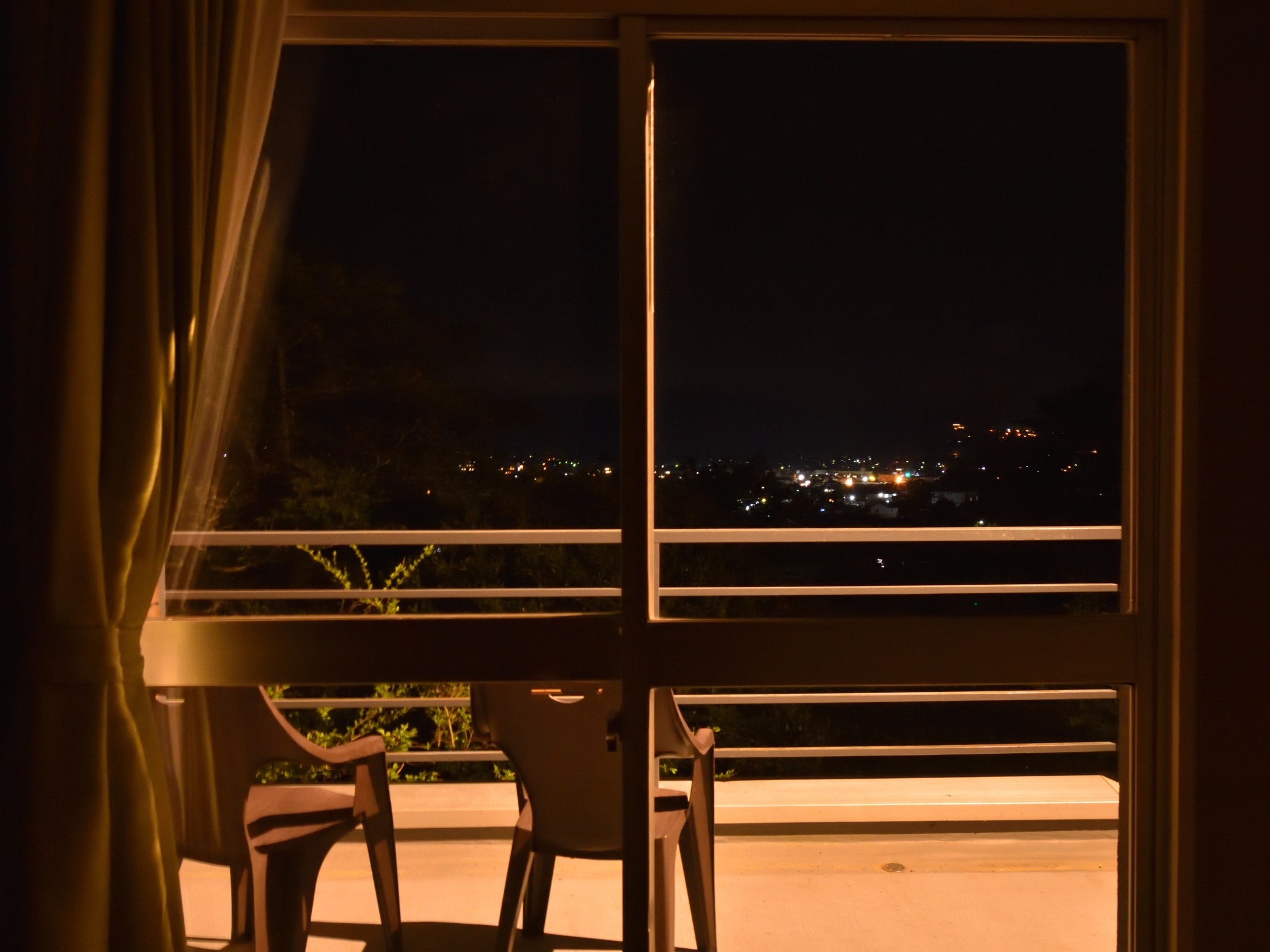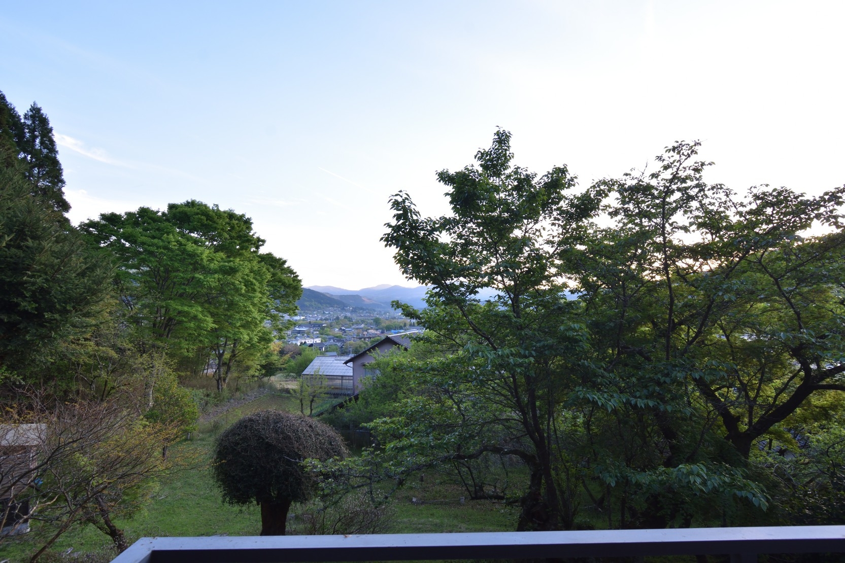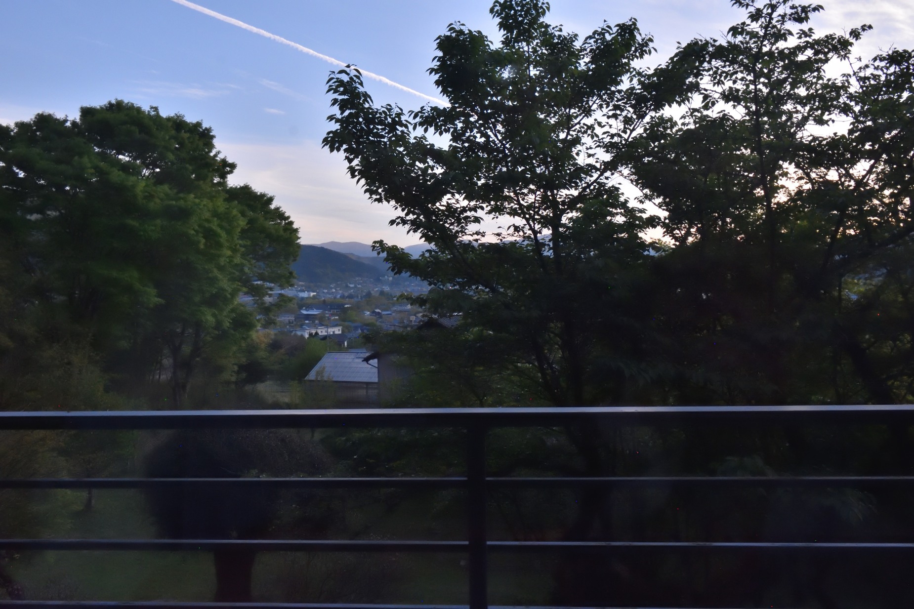 窓から由布院の街を望むお部屋♪お部屋窓外には小さなテラスがあり、天気の良い日はチェアーに座って由布院の街にゆっくりと日が落ちるのを見られます。