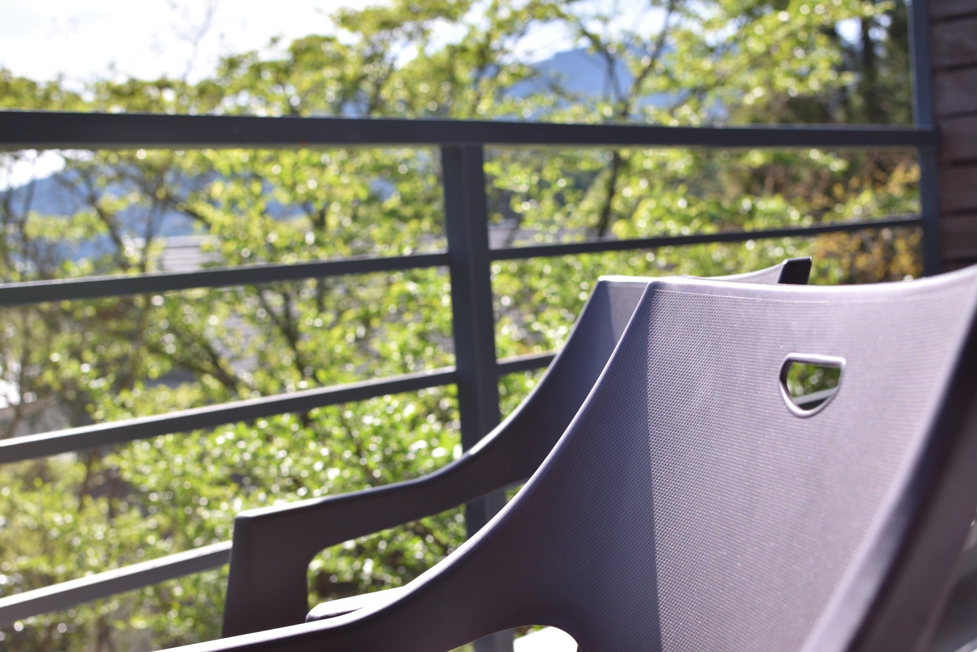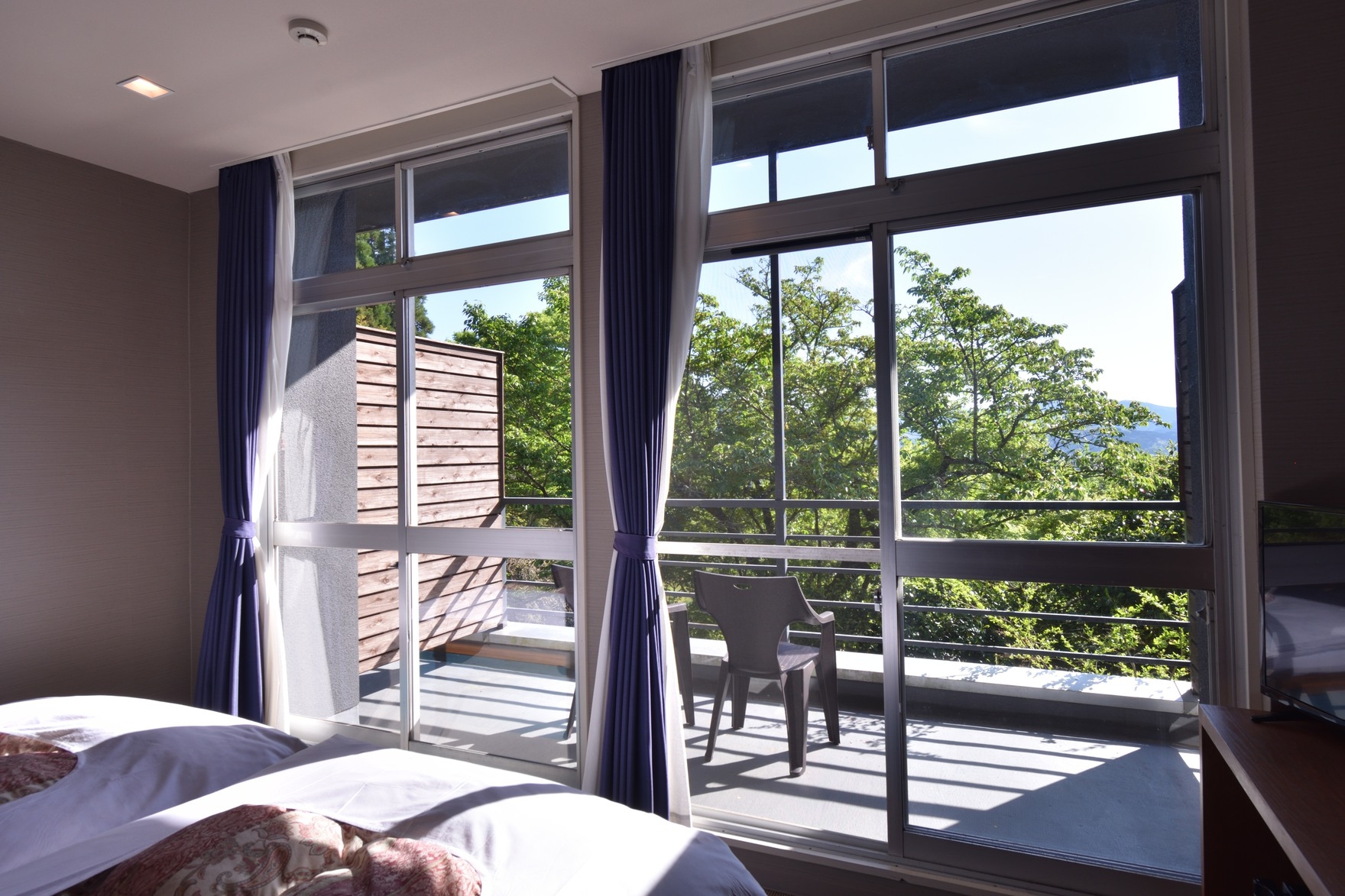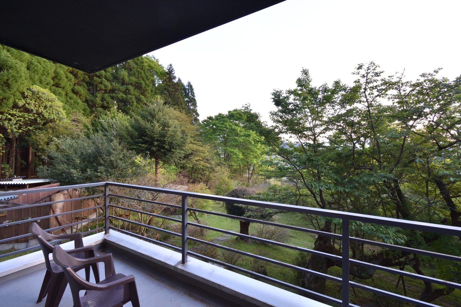 【角部屋】窓から由布院の街を望むお部屋♪お部屋窓外には小さなテラスがあり、天気の良い日はチェアーに座って由布院の街にゆっくりと日が落ちるのを見られます。