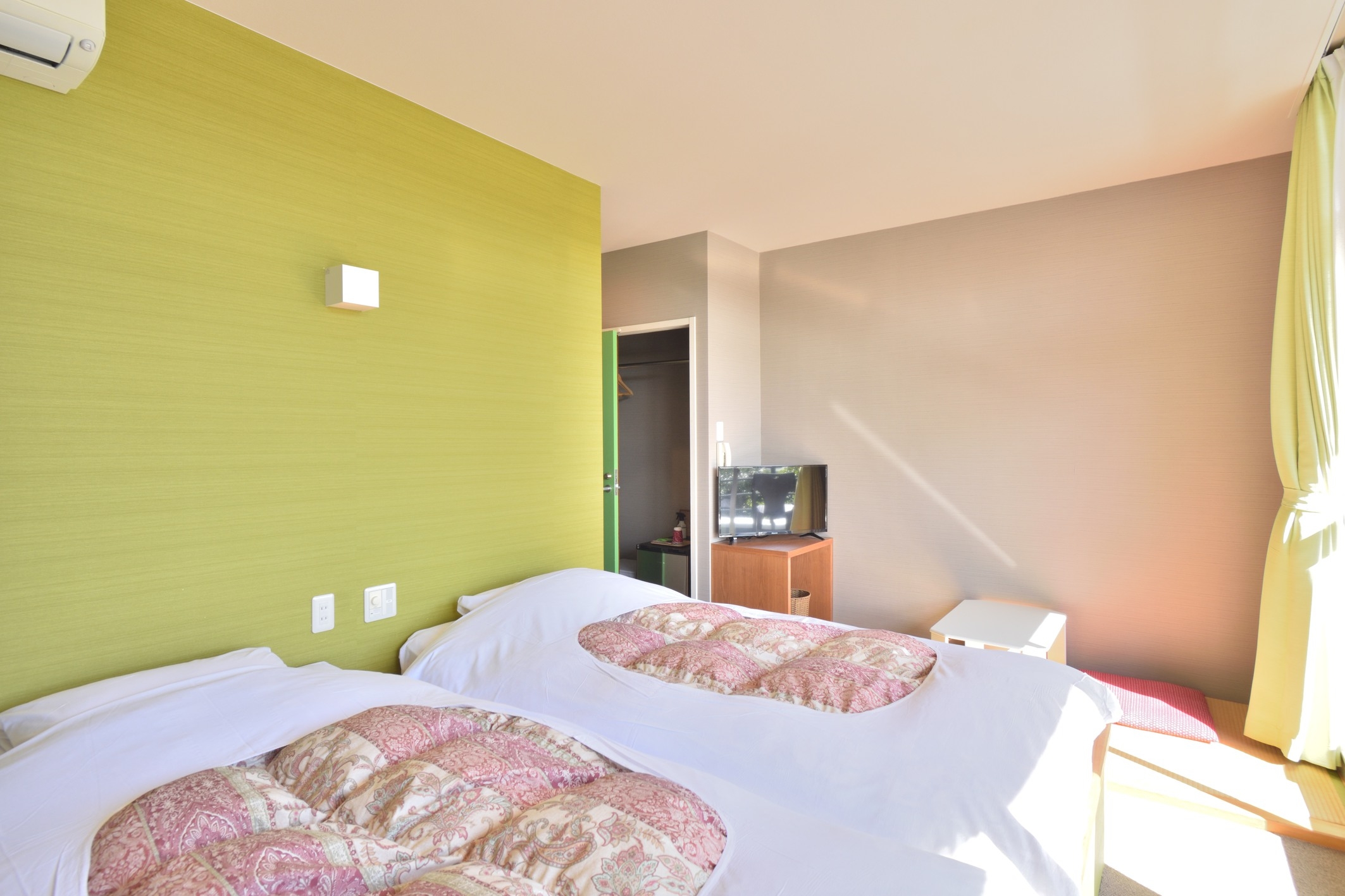 広めのお部屋で、畳ベッド寝室を仕切り別に出来るお部屋です。山側となります旨ご了承下さい