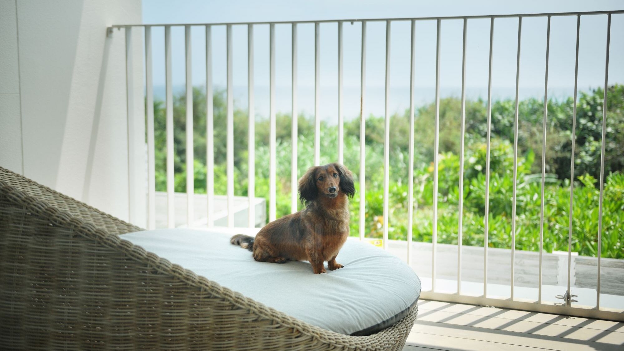 愛犬と一緒にご利用いただけるプライベートバルコニー付のお部屋。1室3名様でご予約の場合は追加ベッドをご用意。