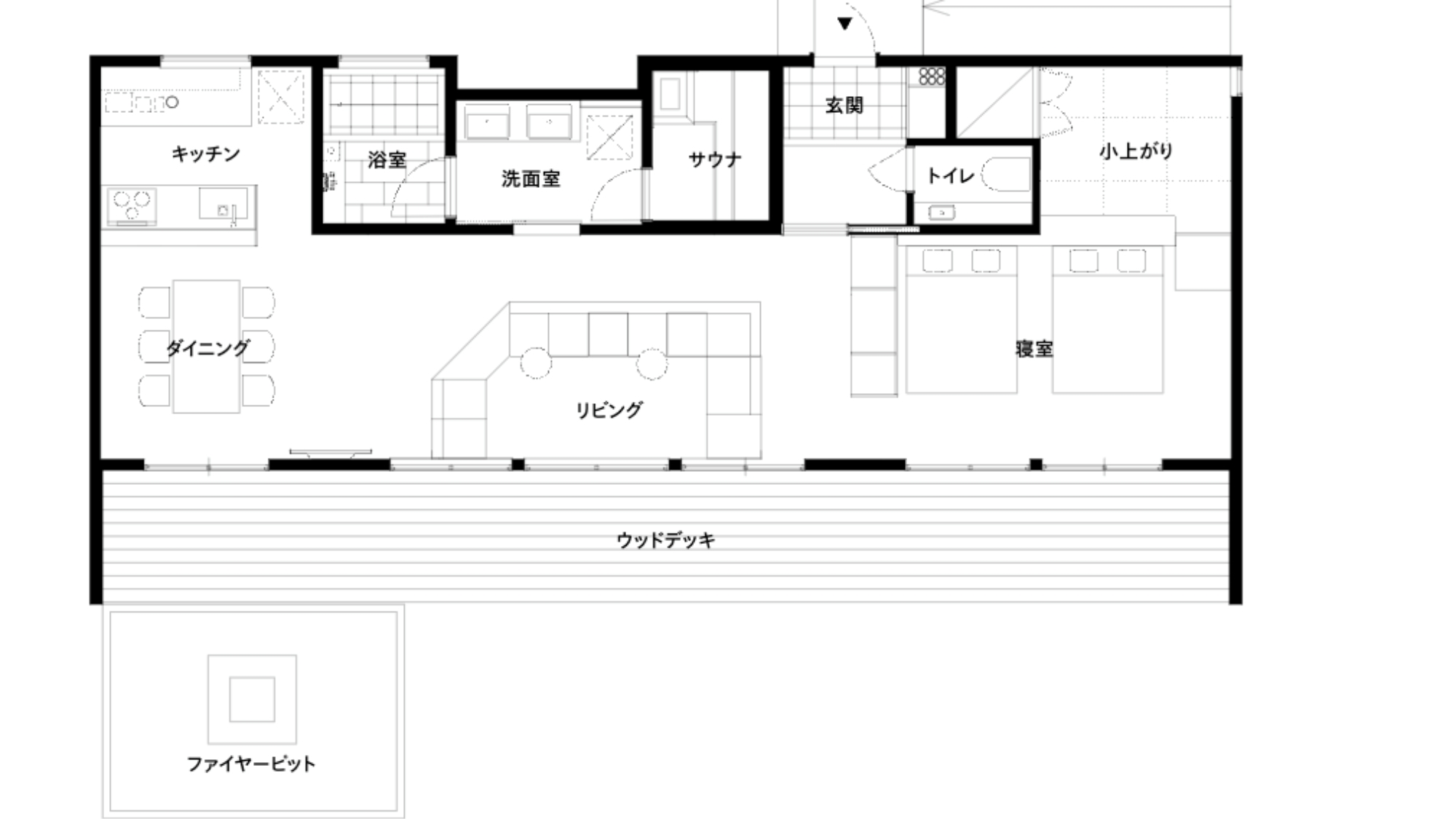 ・ファイヤーピットの炎を愉しむ、ウッドデッキ