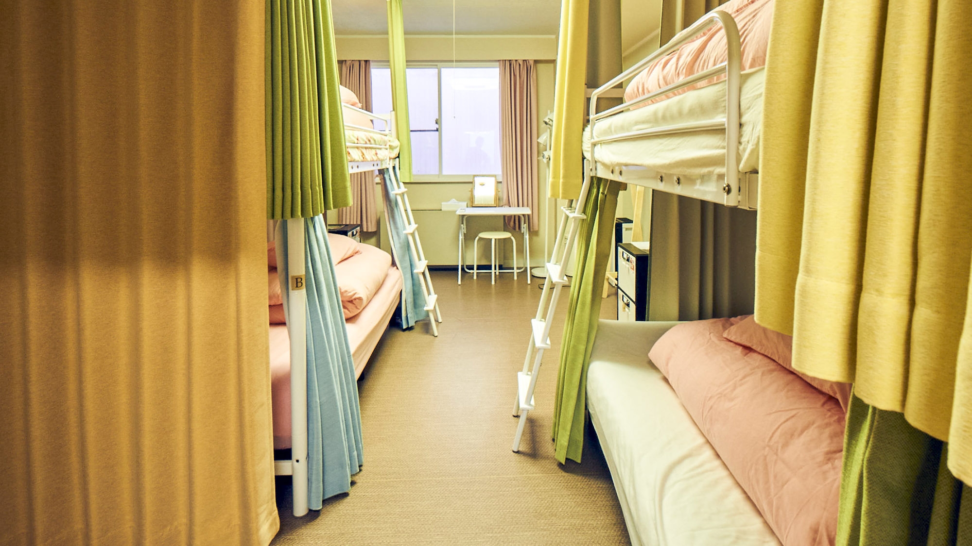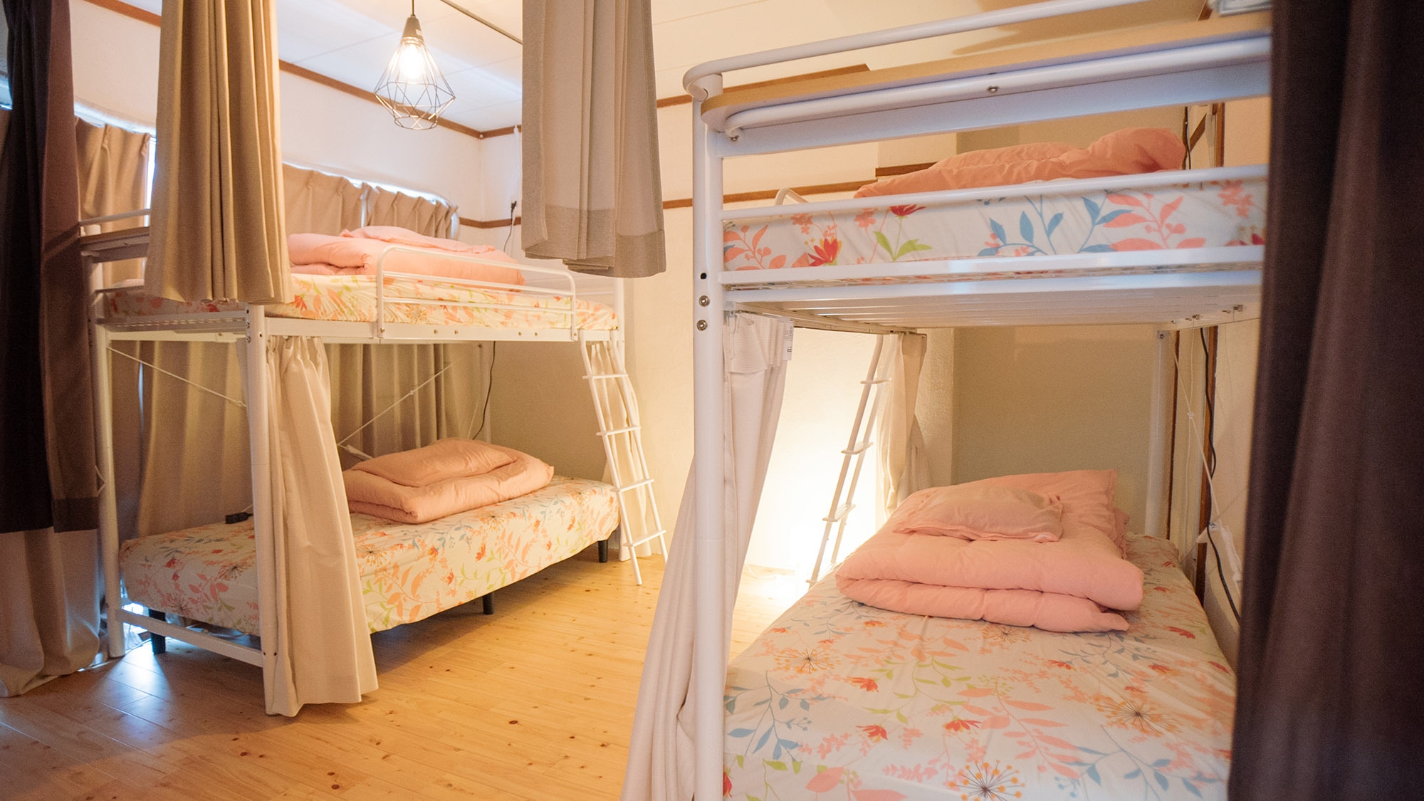 2段ベッド設置の【女性専用】ドミトリー。3Fの女性専用エリアにございますので、安心してご利用下さい。シャワールーム、トイレも女性専用エリア内にご用意しています。