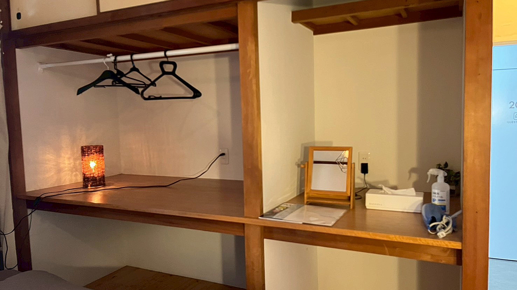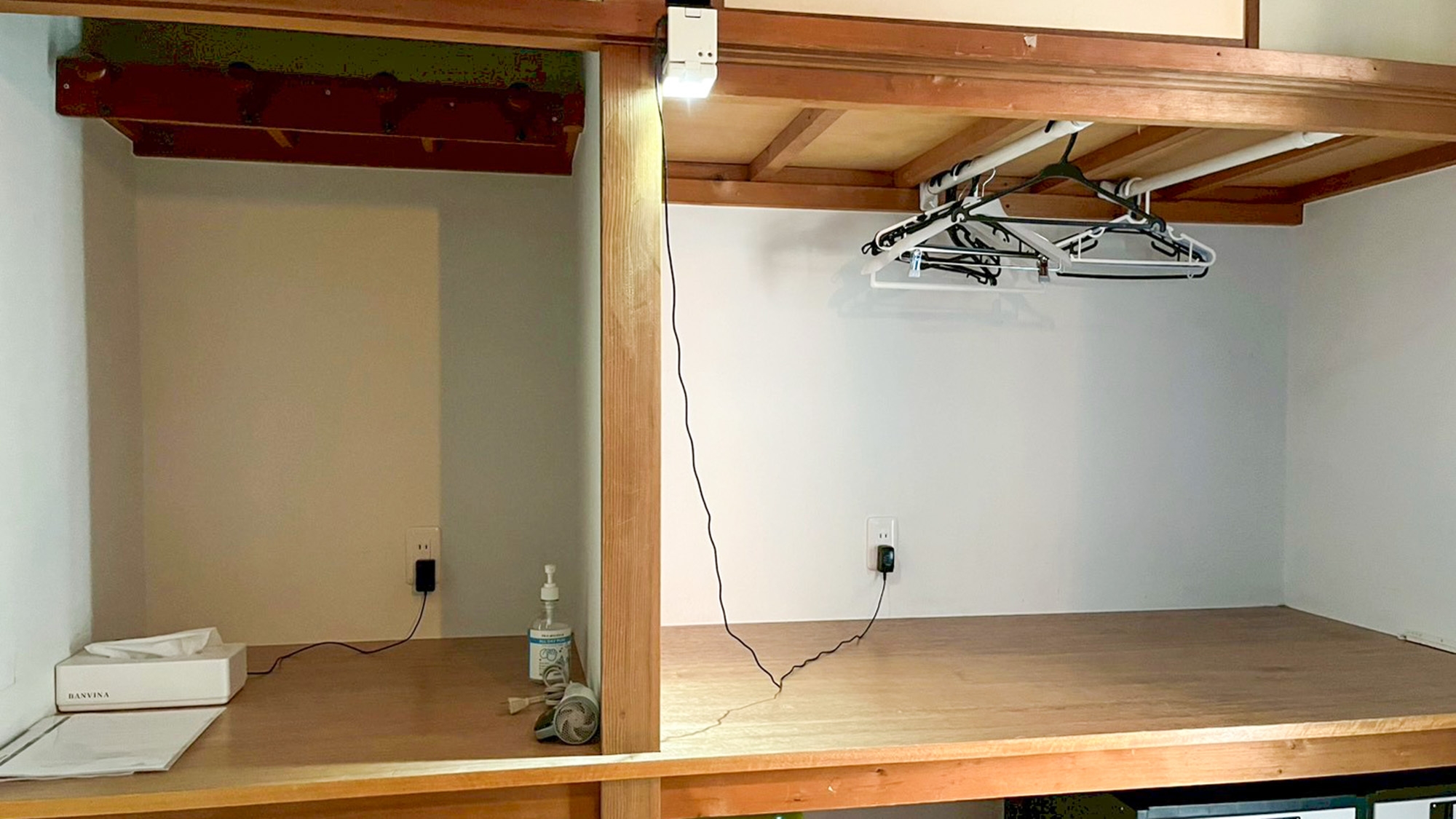 ドミトリーの各ベッドには照明とコンセント付き!