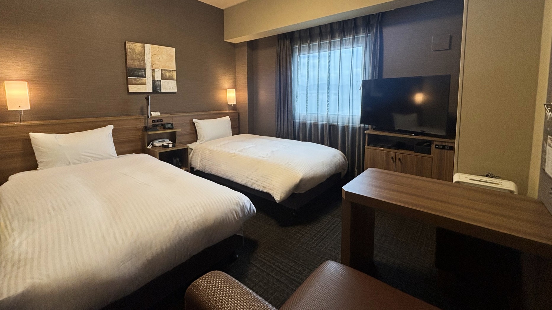 WOWOW無料視聴可能!ベッドサイズ160×200(cm)、40型液晶TV・加湿機能付き空気清浄機設置、無料Wi-Fi利用可能
