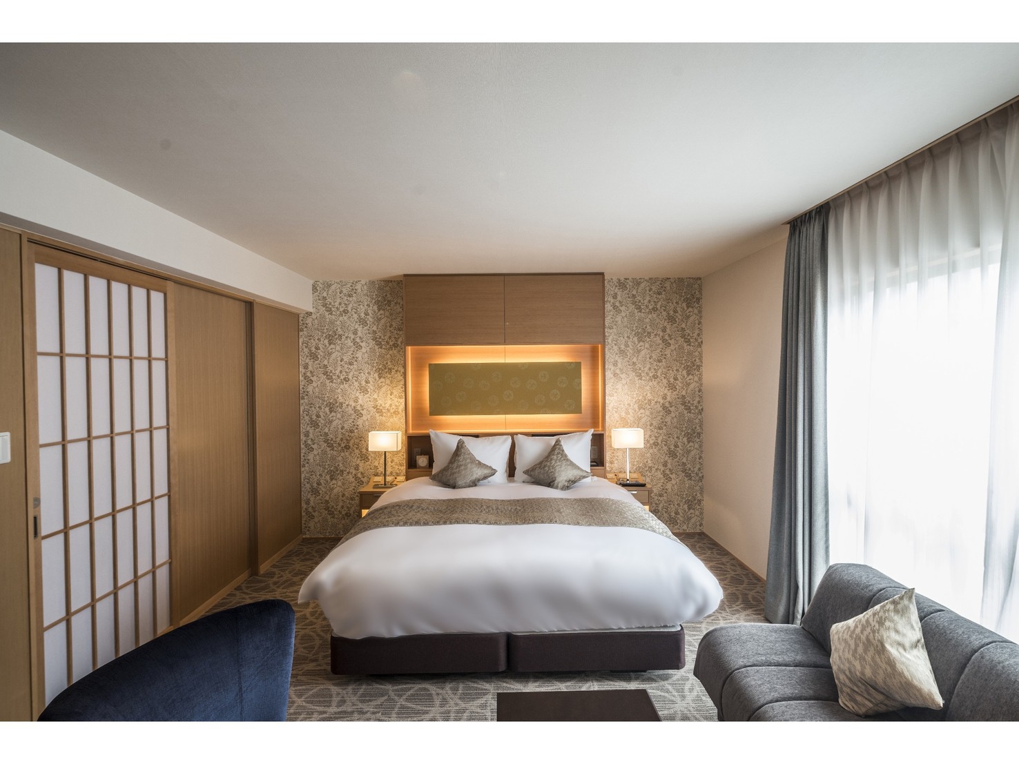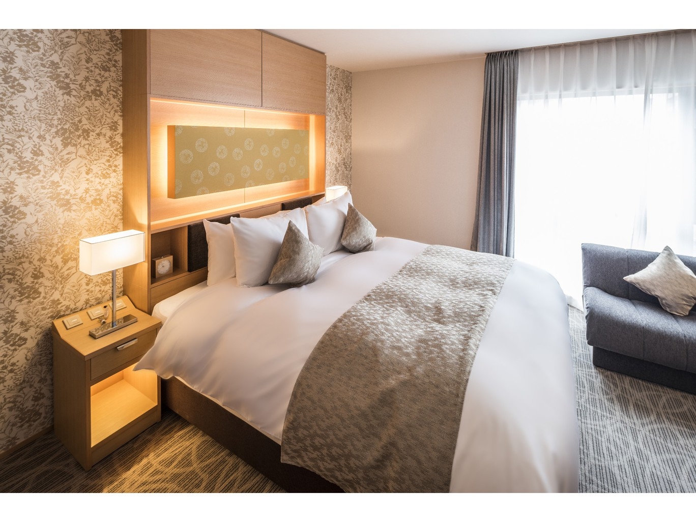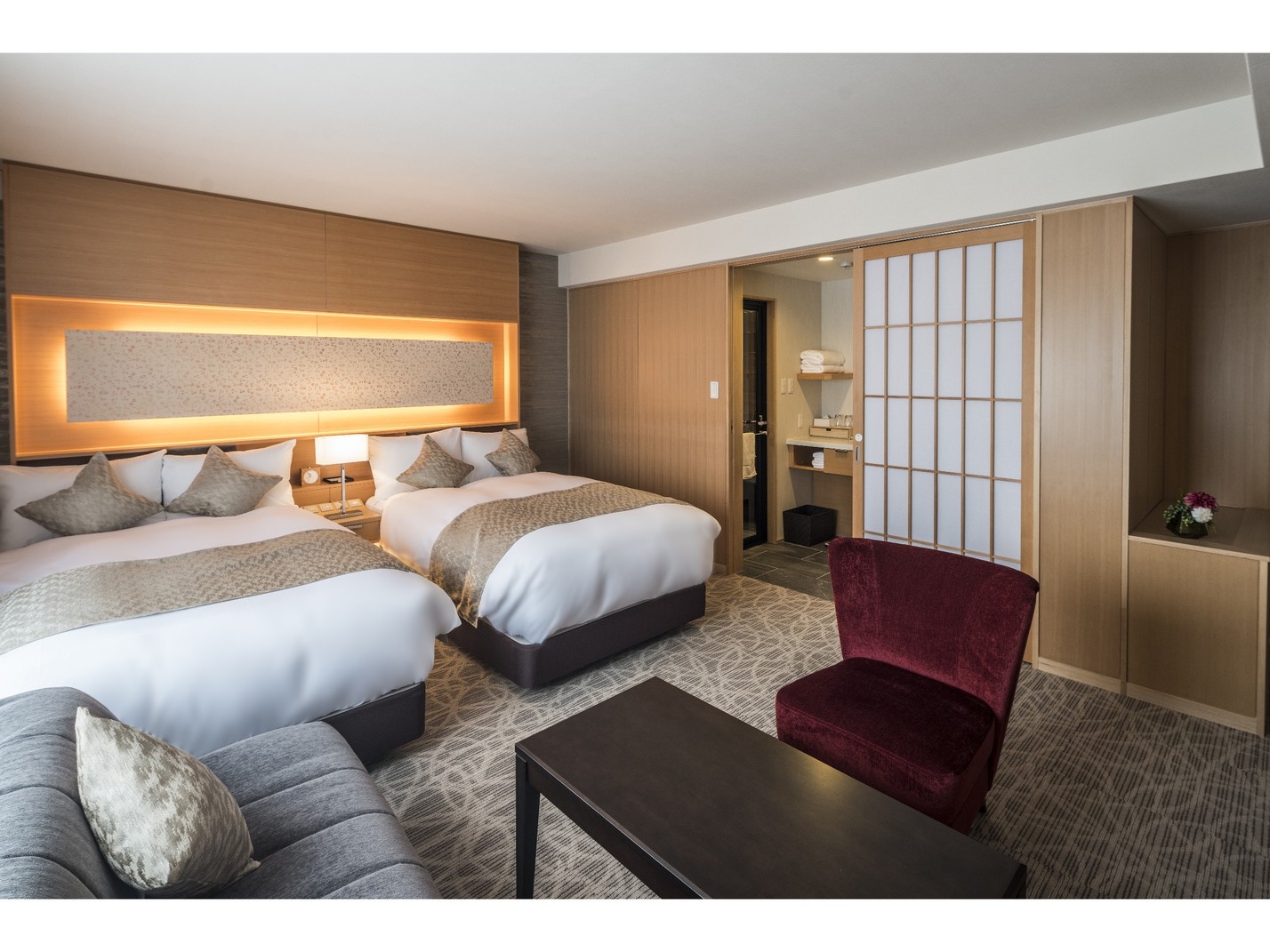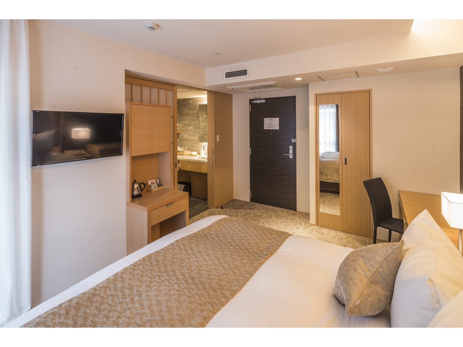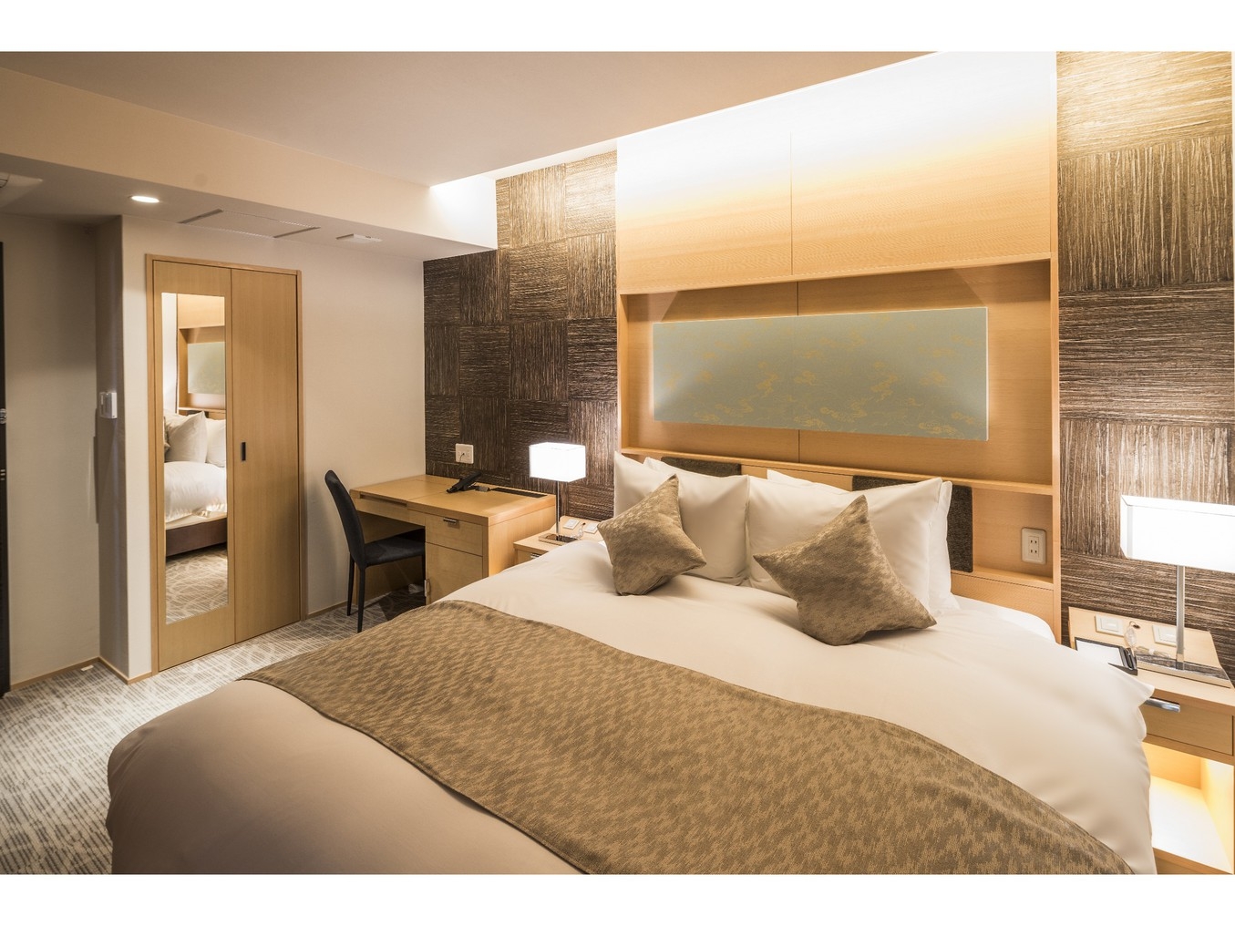 1200mmサイズのシングルベッドが2台設置されたツインルーム。広々とした空間に、快適性にこだわった客室でゆったりとした寛ぎの時間をお過ごしください。