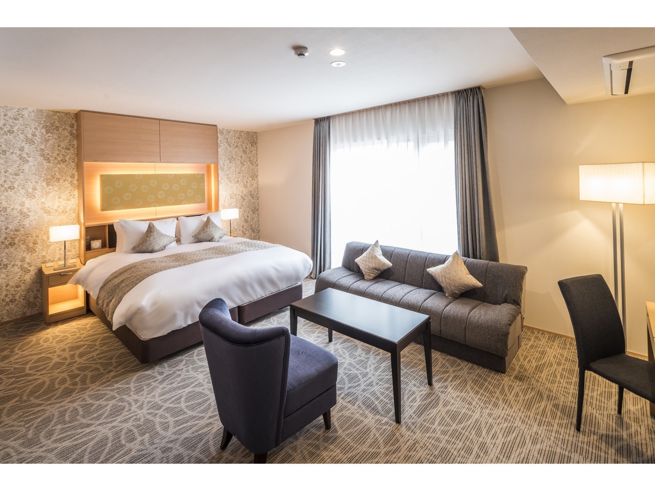 広めのリビングスペースと開放感あふれる大きな窓が特徴のお部屋。隣りあうお部屋がなく、静かでリラックスした時間をお愉しみいただけます