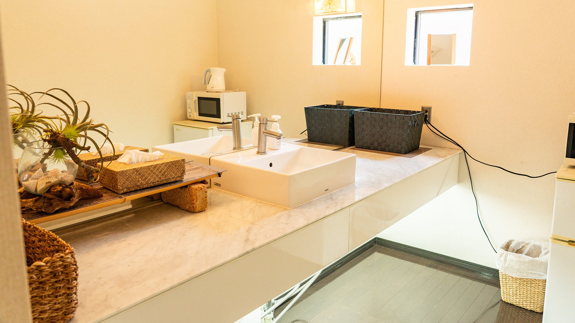 オーシャンビューの吹き抜けコテージ○ 冷暖房完備でご家族様でのご利用はもちろんお友達同士でのグループ旅行にもピッタリ! ※お風呂は大浴場をご利用ください。
