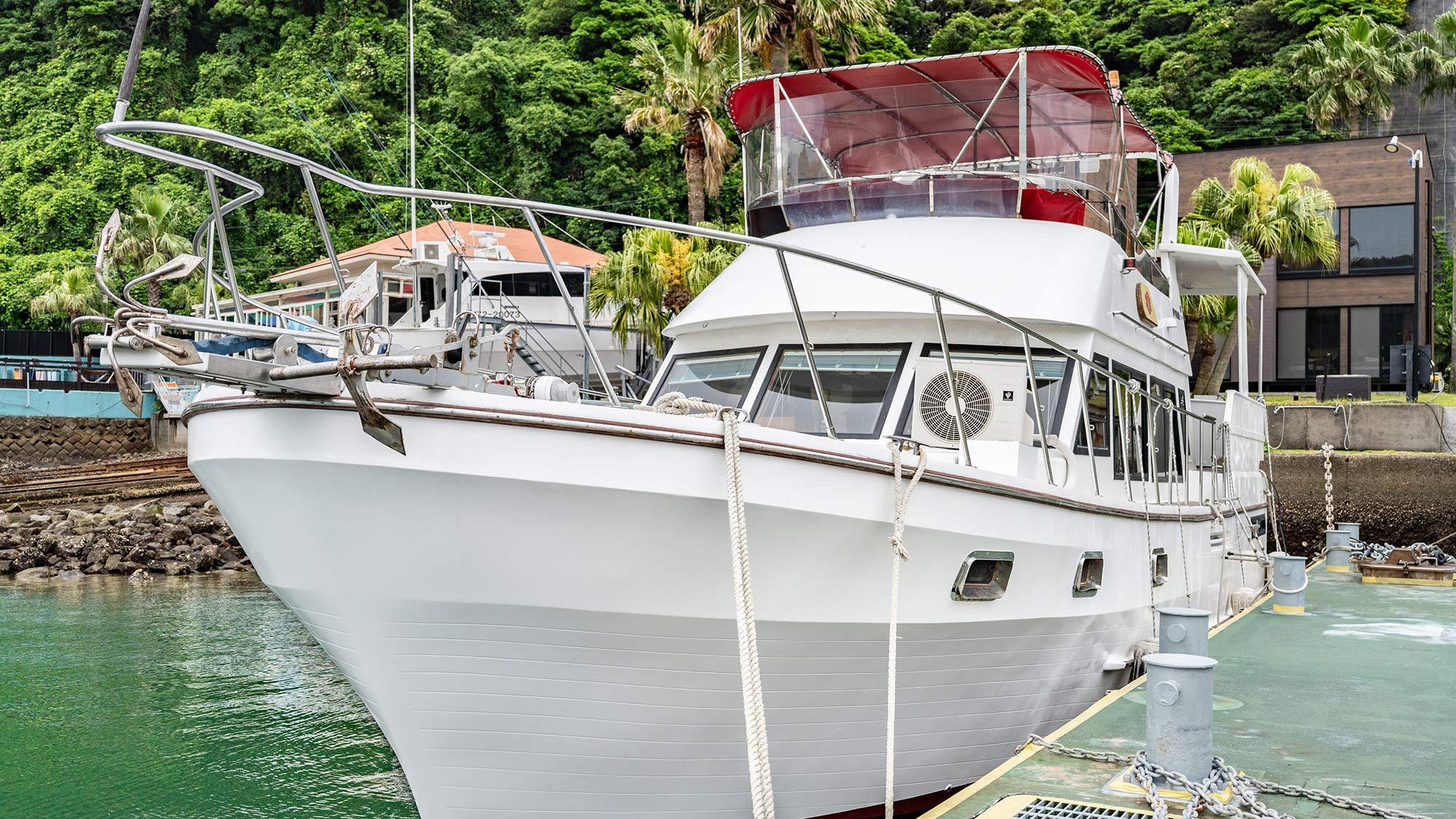 海に浮かぶクルーザーで波の音と自然のリズムを楽しむひと時○※係留中はトイレ、キッチン設備の利用はお控えください※お風呂はついておりません。大浴場をご利用ください