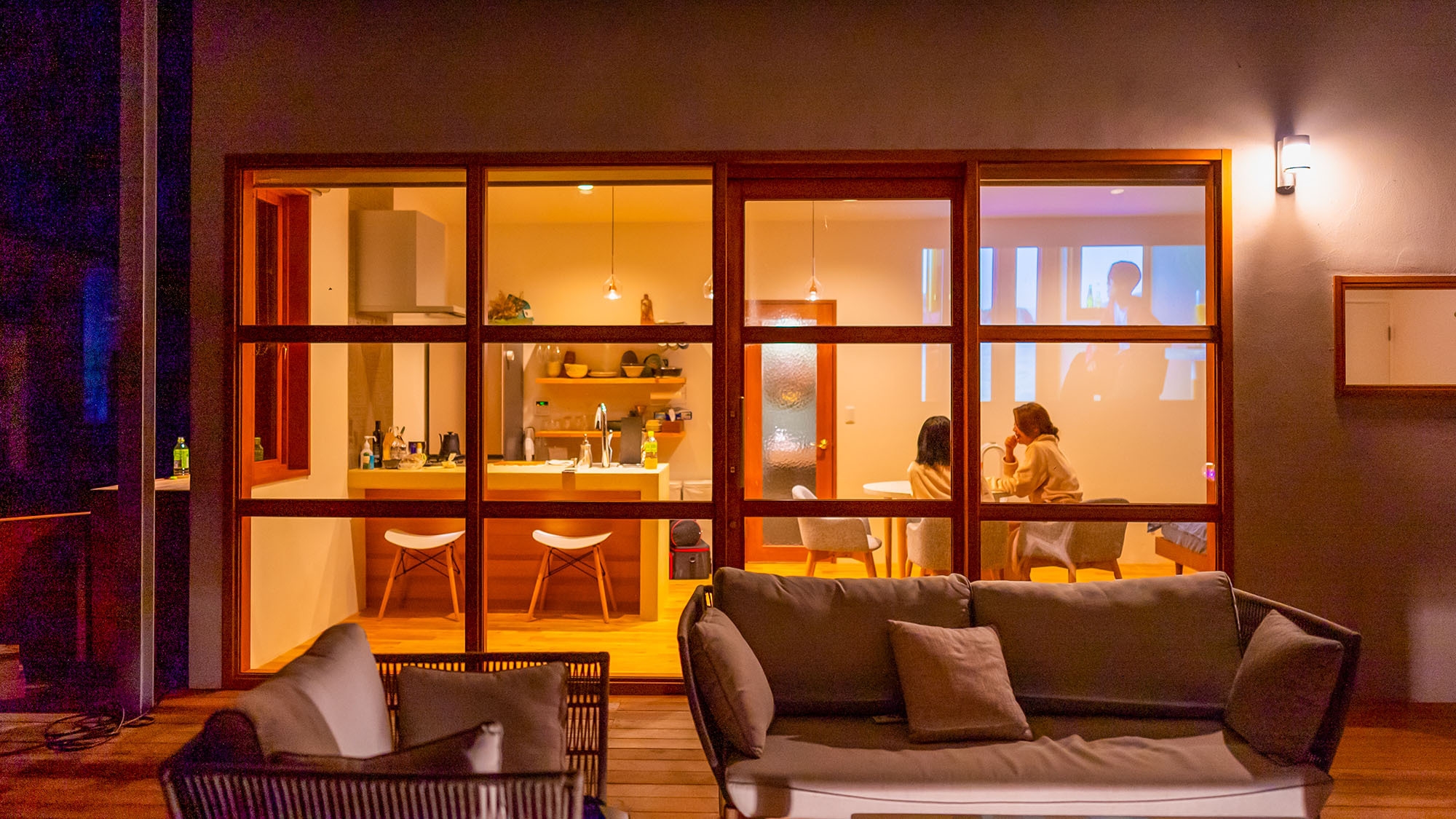 自慢の手料理でサンセットディナー、夜には室内で映画鑑賞や音楽鑑賞