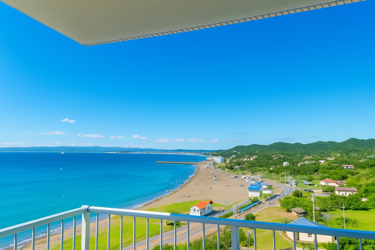 61.8平米 スイートサイズのオーシャンビュー。 ※こちらのお部屋には内風呂・シャワーブースはございませんので、3階の貸切展望風呂をご利用下さい。
