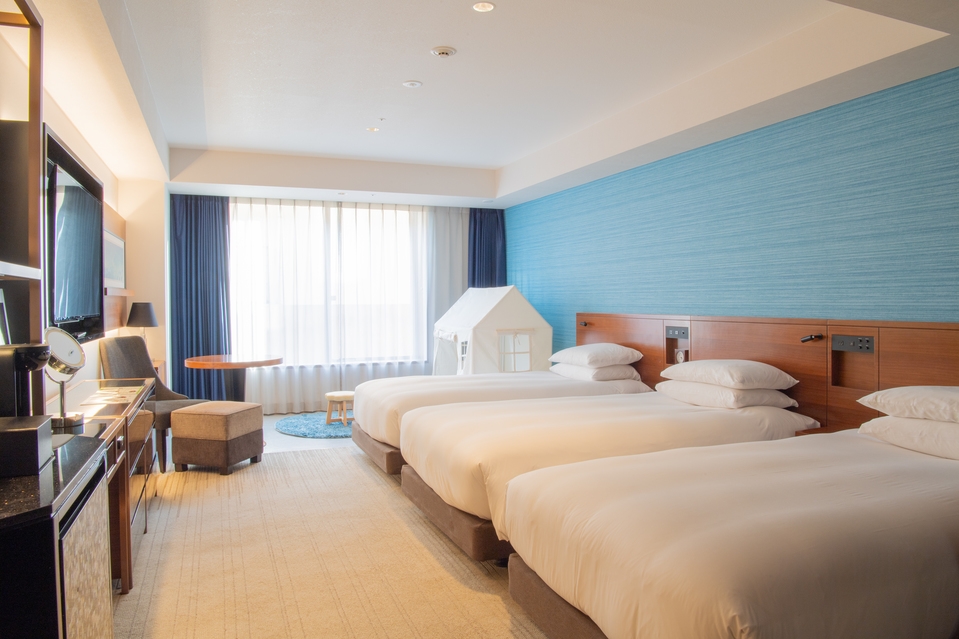 目の前に広がる緑豊かな公園と、海の景色をお楽しみいただけるオーシャンビュールーム。最大大人3名様、お子様は添い寝で2名様までご滞在が可能です。