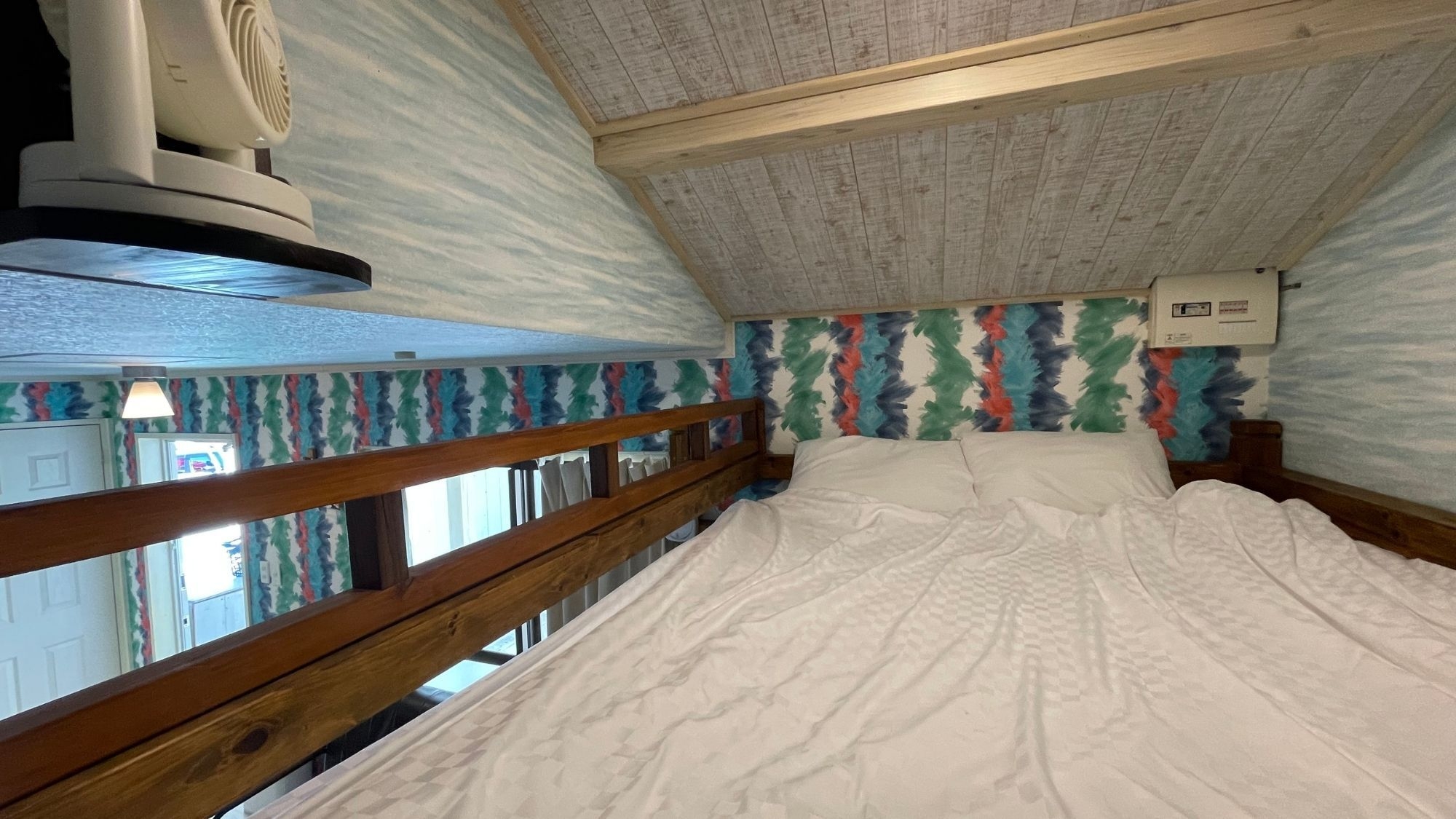 【ロフト完備】クイーンベッドにエキストラベッド。1階と屋上に専用テラス有。