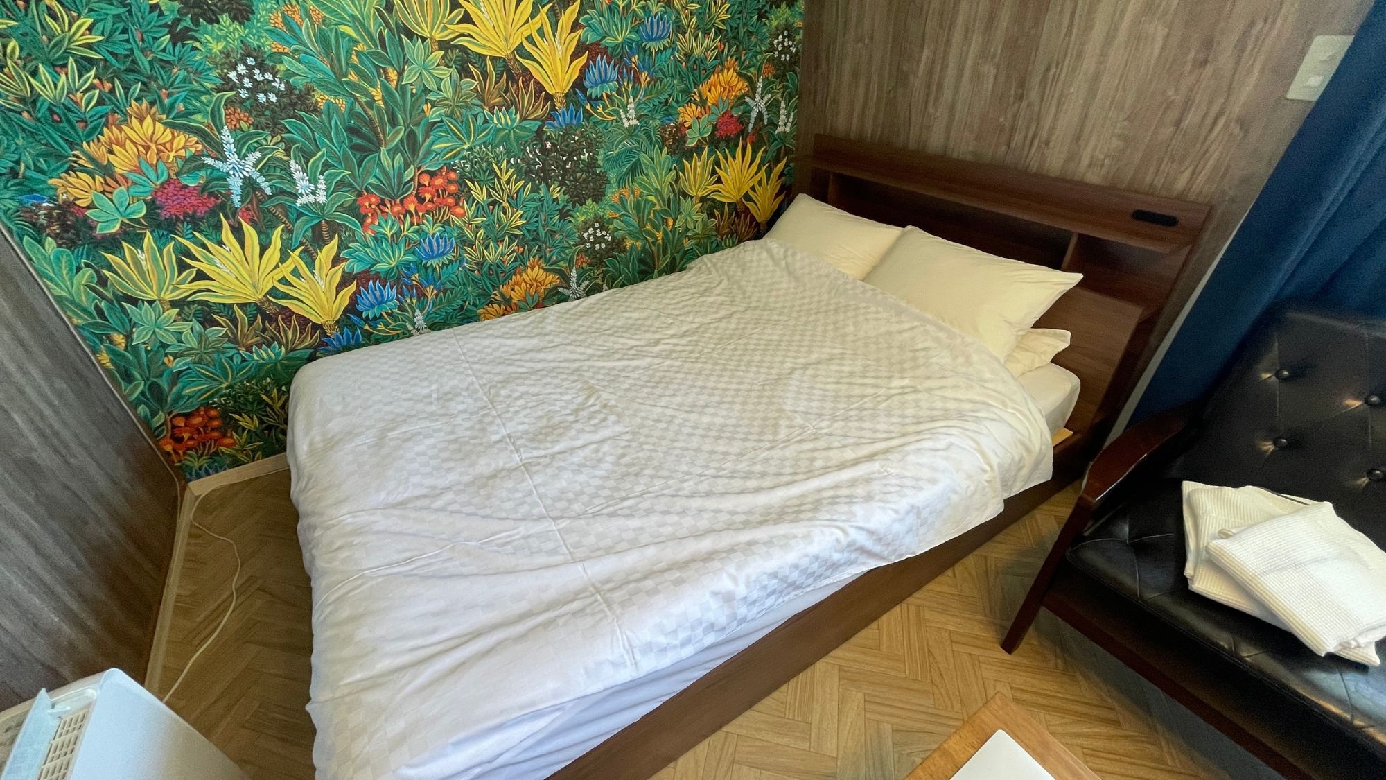 【定員2名様】までご宿泊可能。ワイドダブルサイズベッド1台ご用意しております。※やや狭いタイプのお部屋となります。