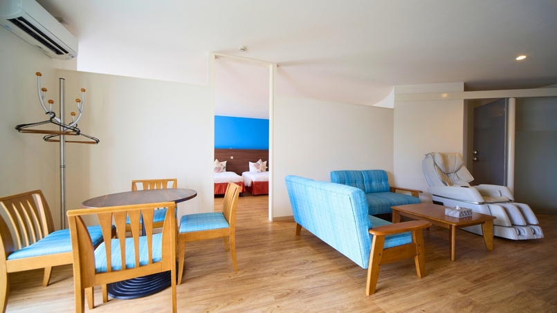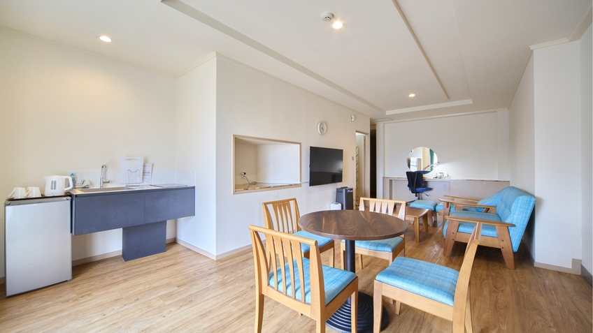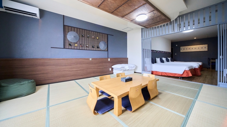 定員2〜8名 最大8名様まで同じ空間でくつろげる 和のやすらぎと洋の機能性が融合した和洋室 4ベッド(5名以上は布団を1組追加)
