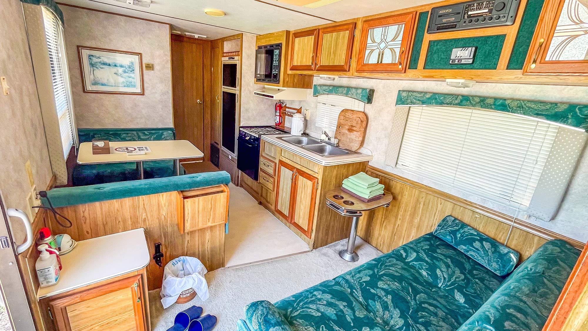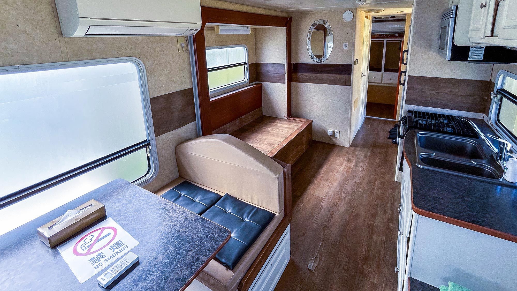 絶景に囲まれたシーサイドグランピングを満喫!遊び心を刺激するトレーラーハウスで車中泊。最大5名様までご宿泊可能。空調完備。シャワー・洗面台・トイレ付。