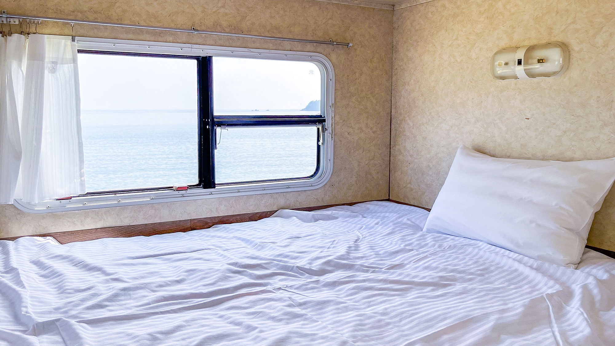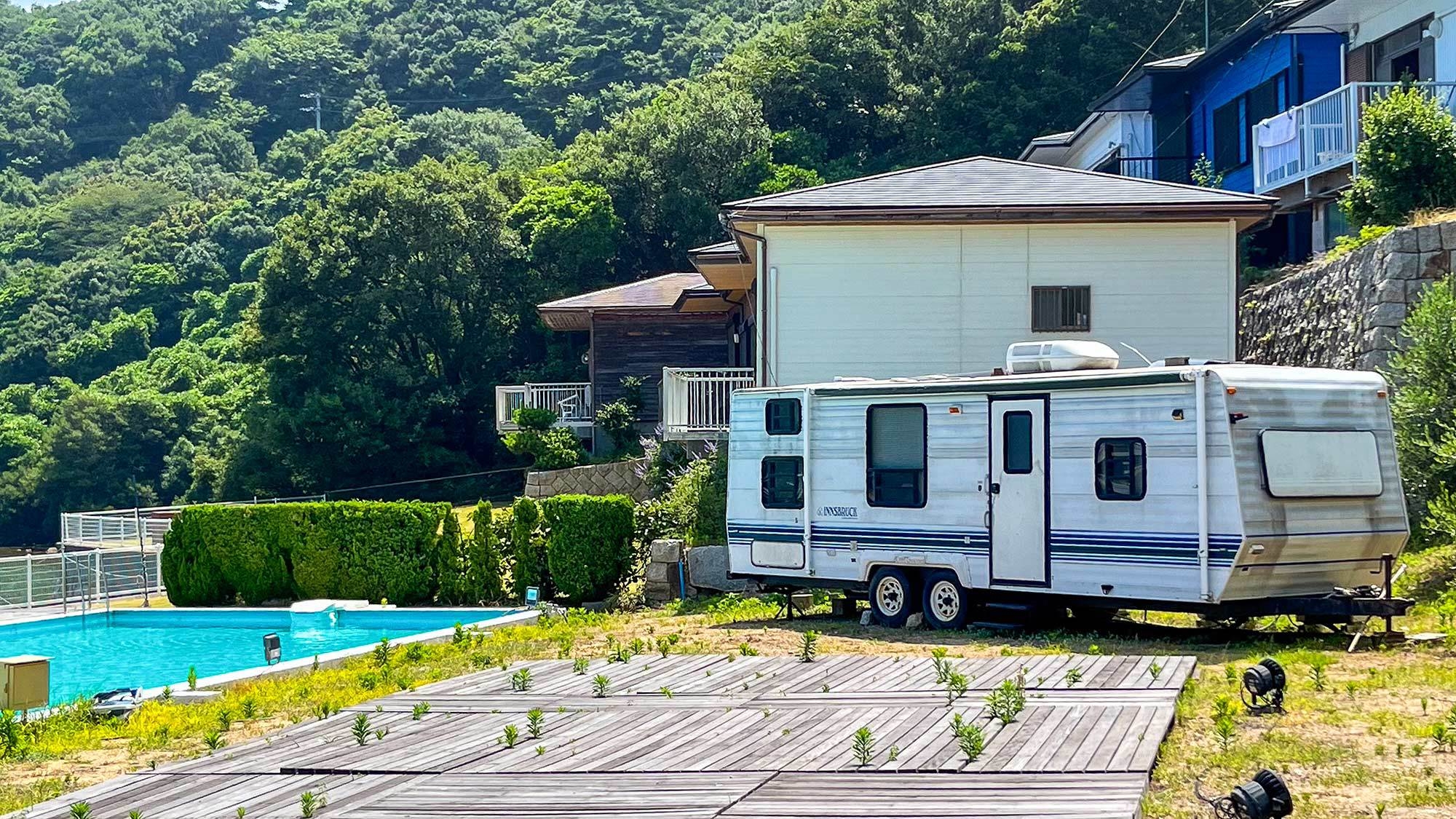 絶景に囲まれたシーサイドグランピングを満喫!遊び心を刺激するトレーラーハウスで車中泊。最大4名様までご宿泊可能。空調完備。シャワー・洗面台・トイレ付。