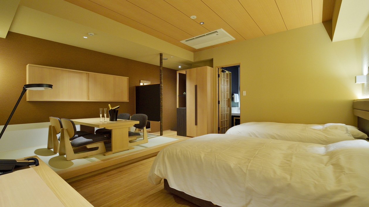 禁煙ルーム:ツイン(ビューバス・トイレ付)夕日を望むビューバスとRefa美容アイテムを愉しみながら、 贅沢なひとときを過ごせるスイートルーム。