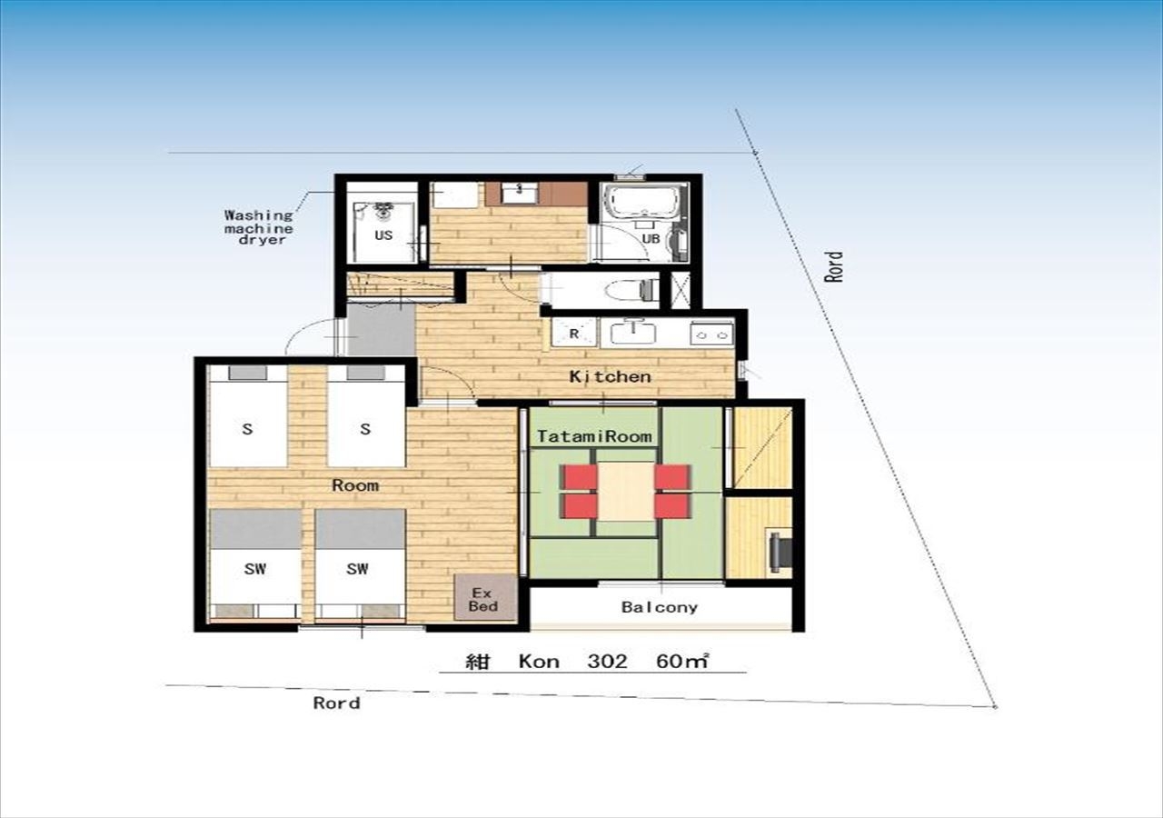・浴室乾燥機付きのお風呂や洗濯乾燥機があり、長期滞在にも最適。