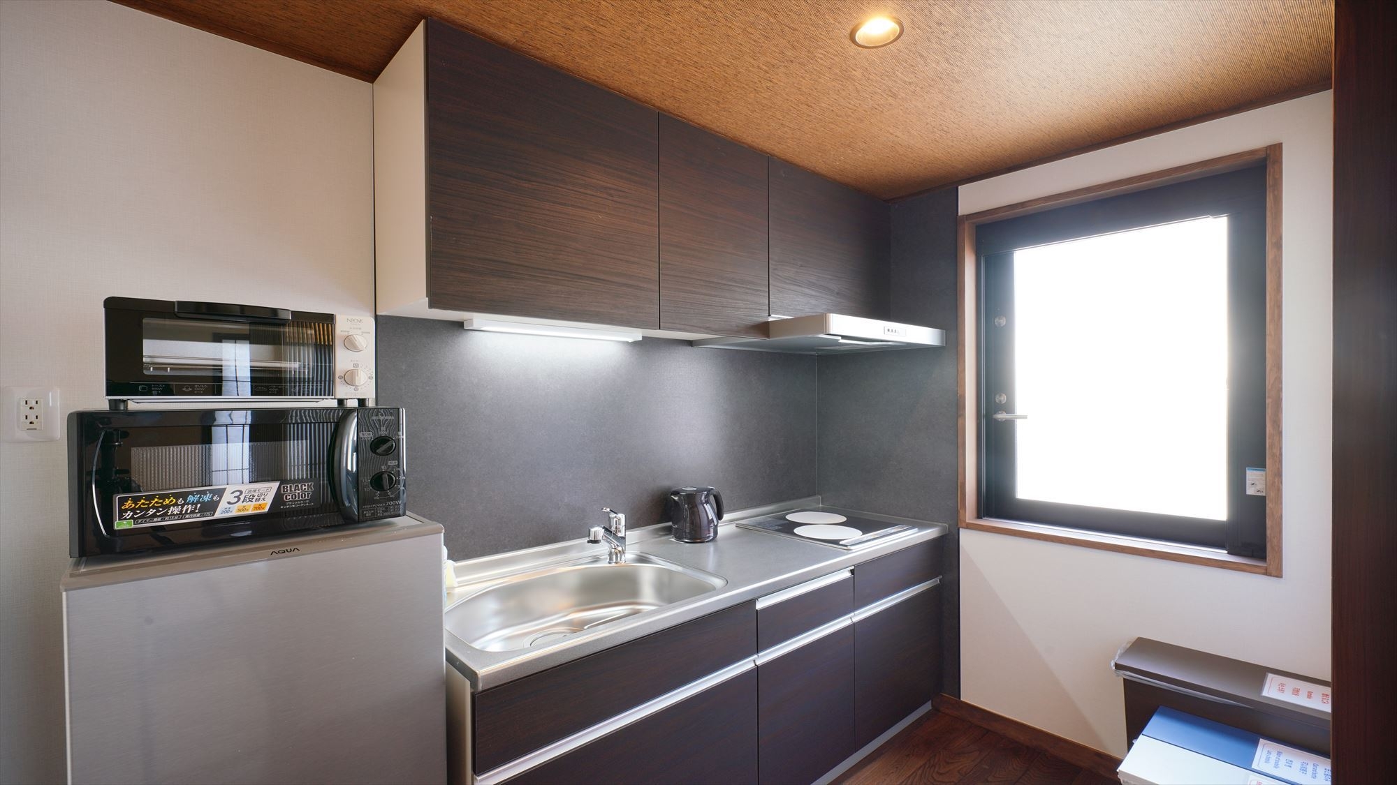 ・キッチン完備(IHコンロ、冷蔵庫、電子レンジなど)で自炊が可能。
