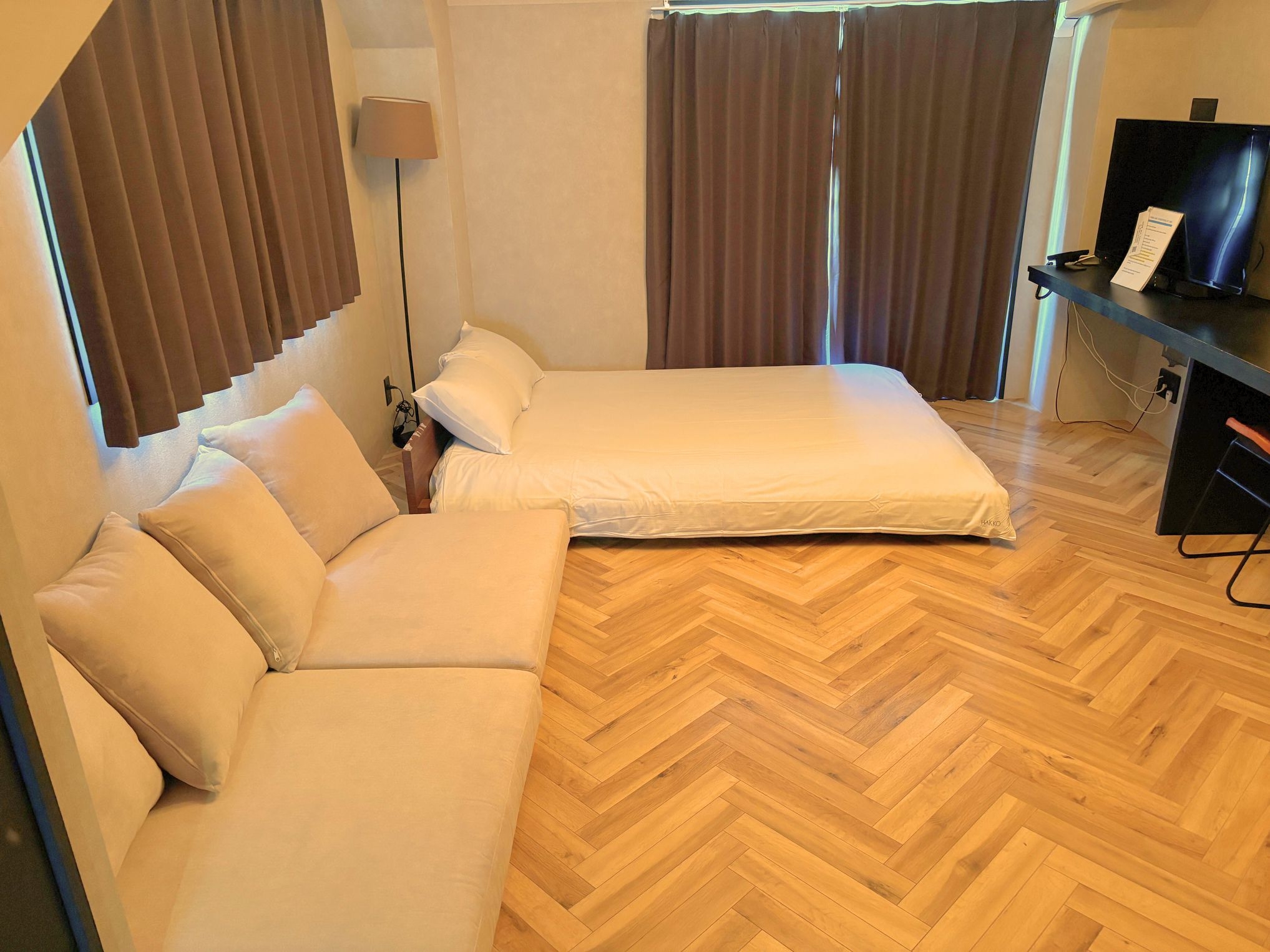 最上階に位置しローベッドやソファーなど家具の位置を低くしているため、広々とした空間に感じられます。Wi-Fi完備・シャワートイレ別