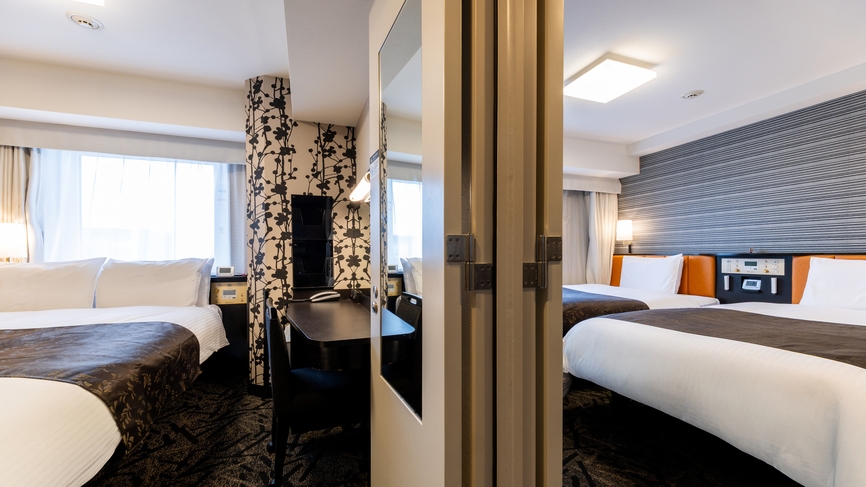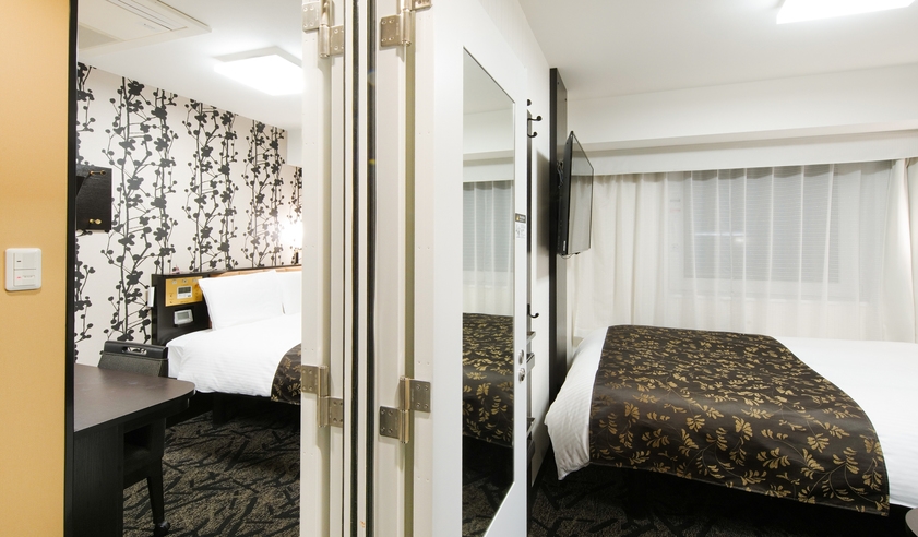 ダブル(1ベッド)とダブル(1ベッド)2室連結/広さ22平米(11平米+11平米)/ 2室を内扉で繋ぐ客室
