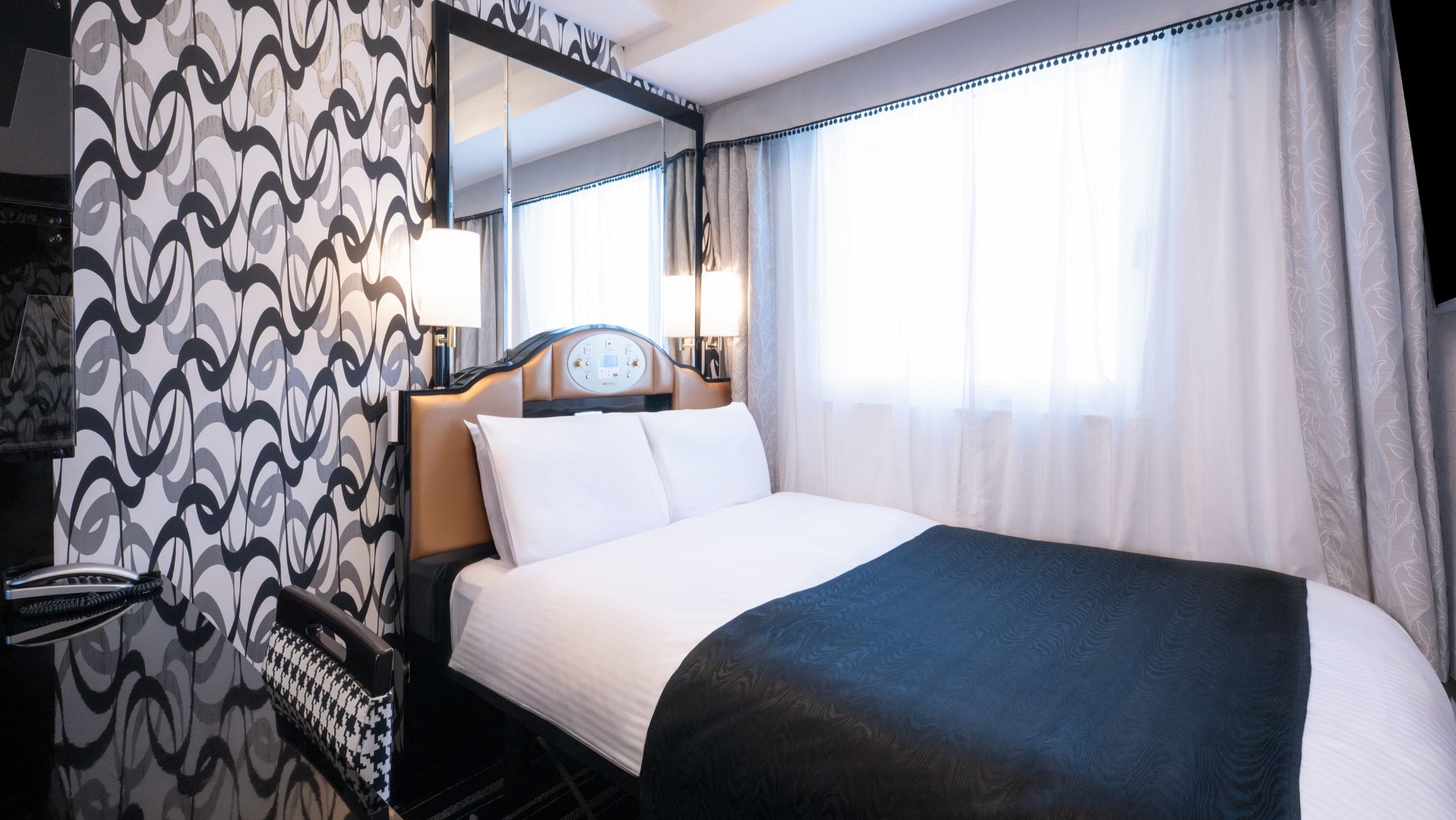 ベッド(幅142cm・長さ196cm・高さ63cm)・ベッド下収納・ Wi-Fi接続無料・50型液晶テレビ・遮光カーテン・枕元コンセント・炭酸ガス3分の1抑制