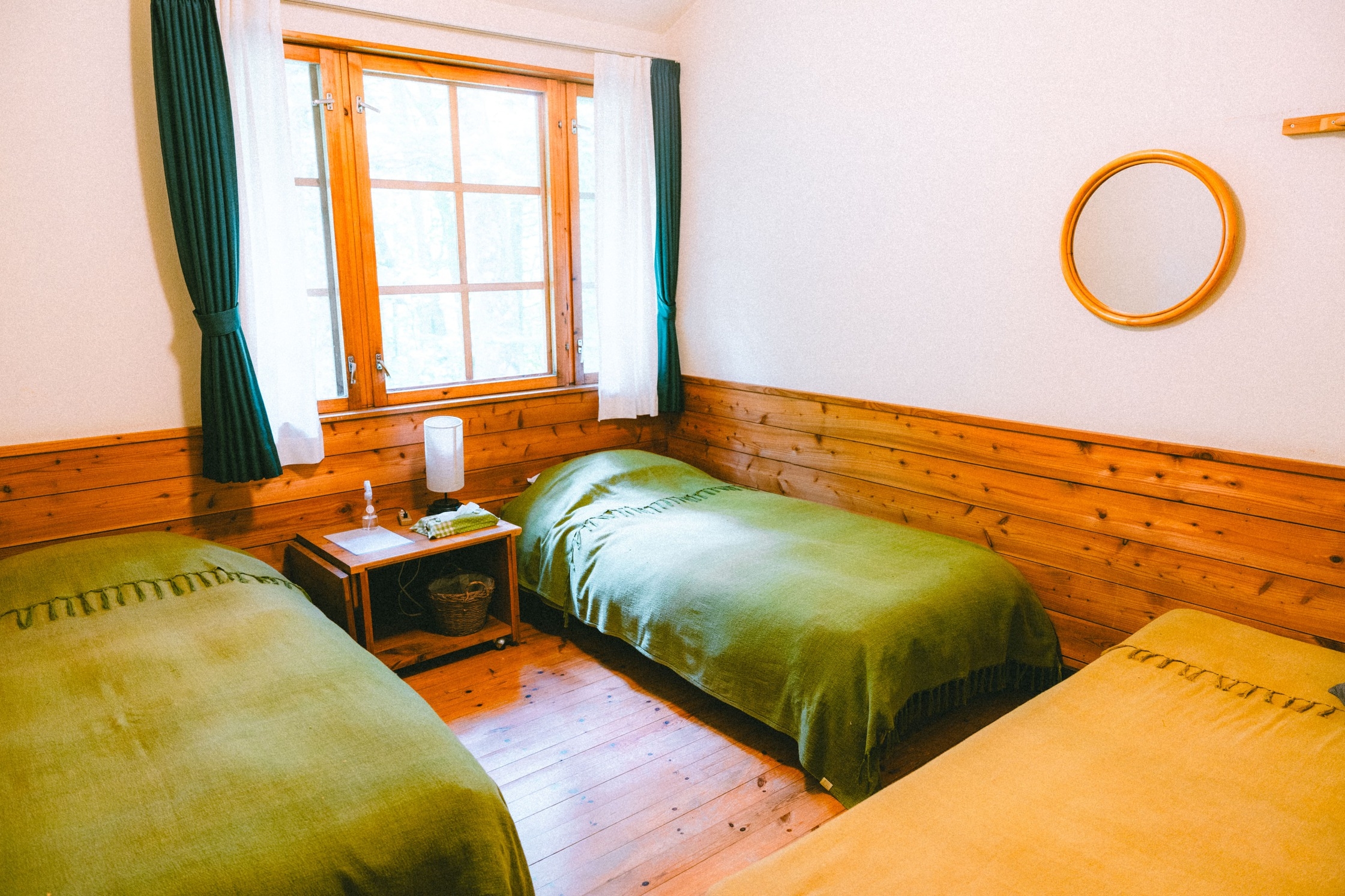 窓から森が見える明るいお部屋。館内無線LAN完備 テレビは各部屋設置 丸沼高原スキー場 宿からの距離 747m