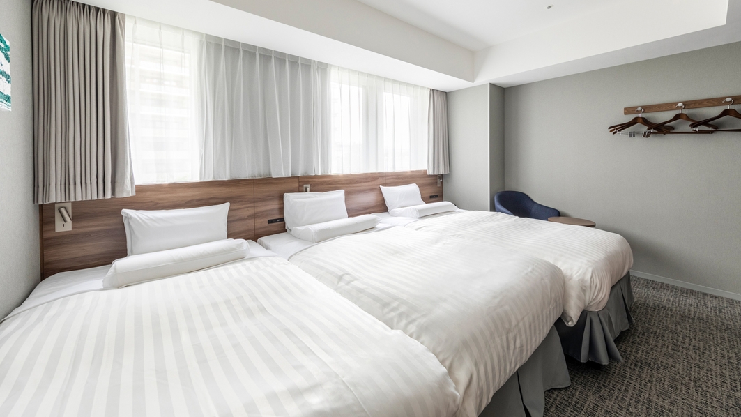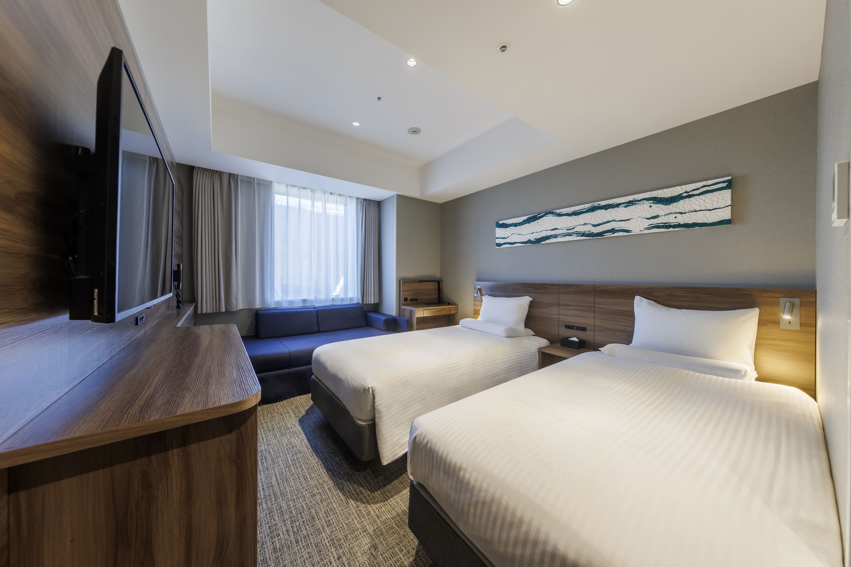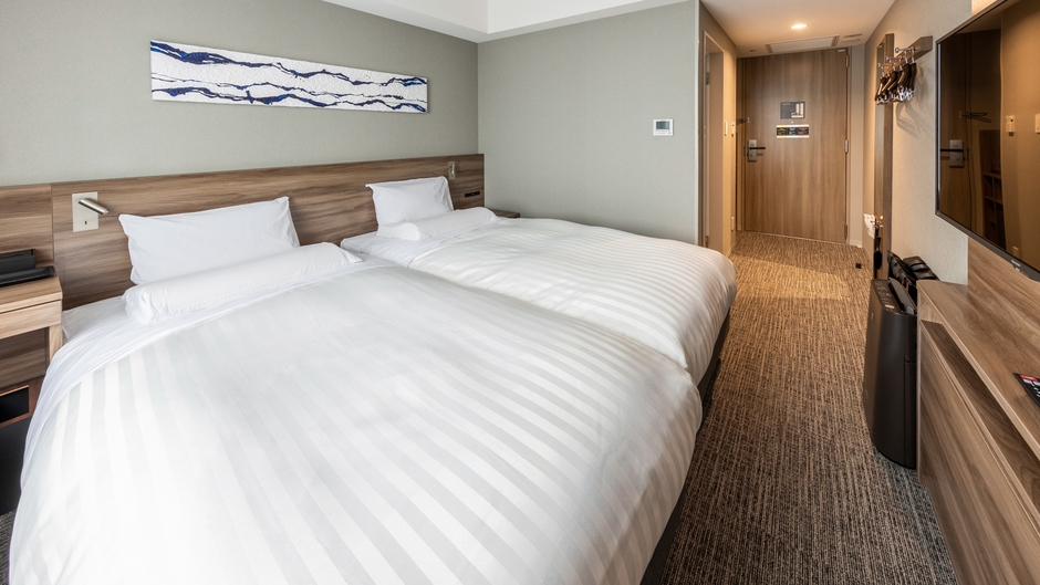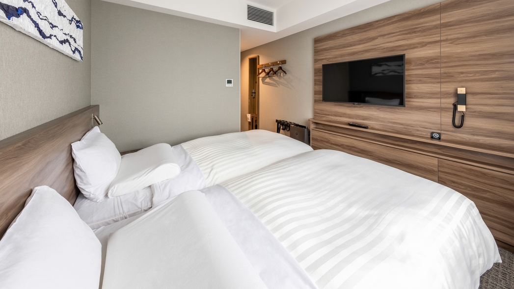 ◆お部屋の広さ18平米◆ベッド幅110cm2台◆Wi-Fi接続無料◆40インチワイド液晶テレビ完備◆完全個別空調◆加湿機能付空気清浄機