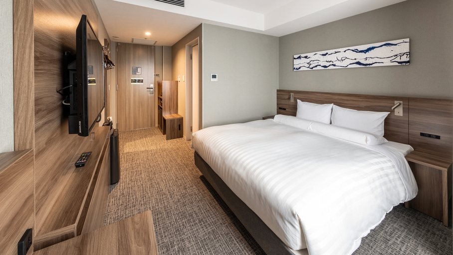 ◆お部屋の広さ18平米◆ベッド幅160cm◆Wi-Fi接続無料◆40インチワイド液晶テレビ完備◆完全個別空調◆加湿機能付空気清浄機