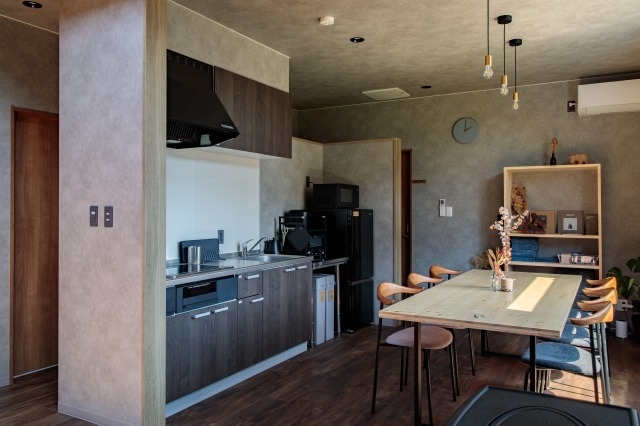 シェアキッチン、ラウンジあります。1室2名ご予約の場合はセミダブルベッドにお二人でお泊まりいただく形になります。