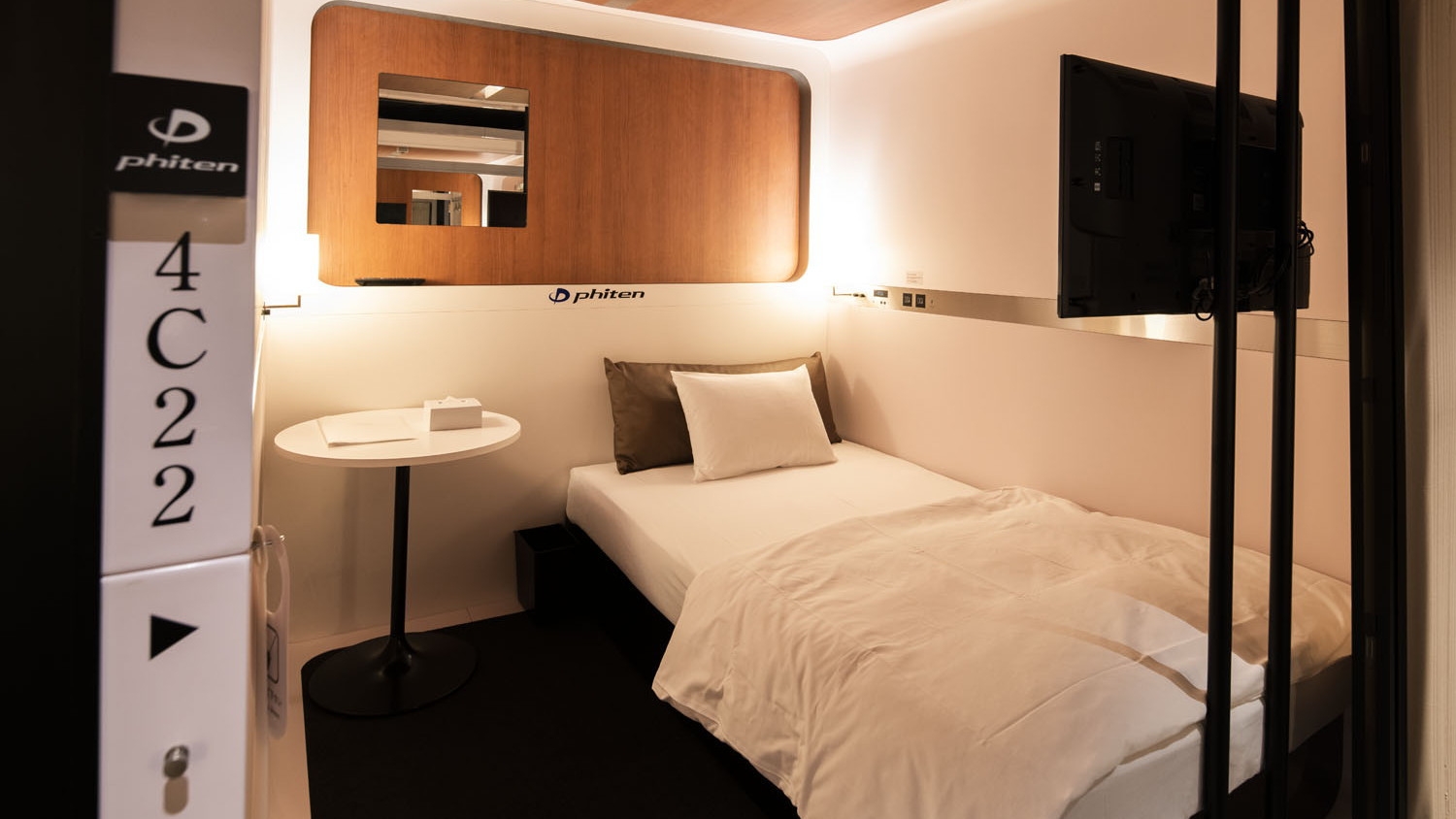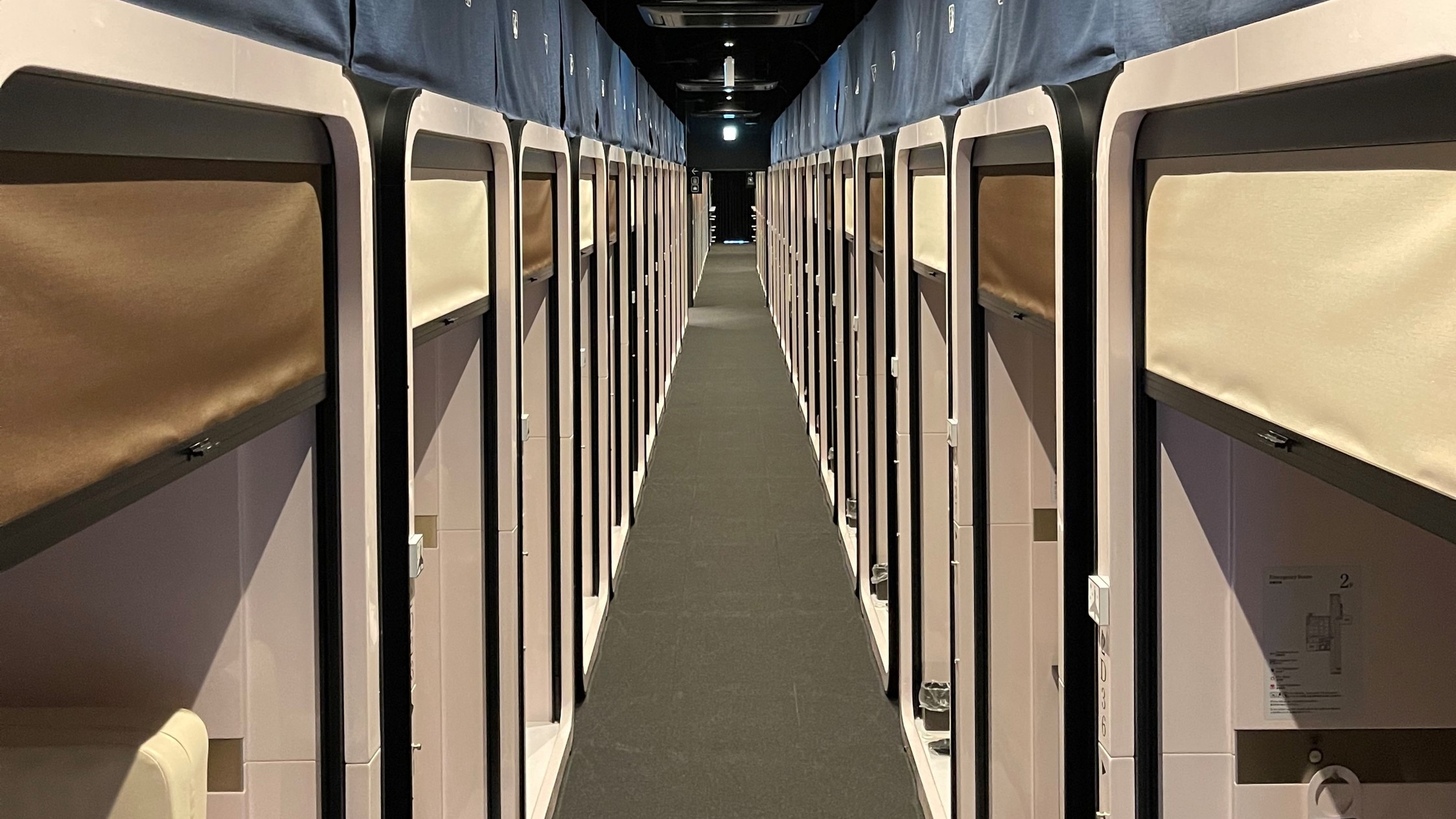 飛行機のファーストクラスをイメージ!館内エントランス・ラウンジは京風にアレンジ!和と融合したカプセルタイプのホテルです。主要観光地や四条烏丸方面の移動にも便利な立地です。是非ご利用ください!