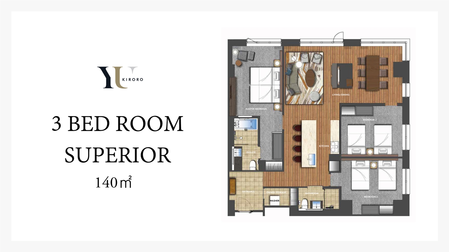 禁煙/マスタールーム:キングベッド(幅240cm×1台)/セカンドルーム・サードルーム:ツインベッド(幅120cm×2台)/12歳以下添い寝無料