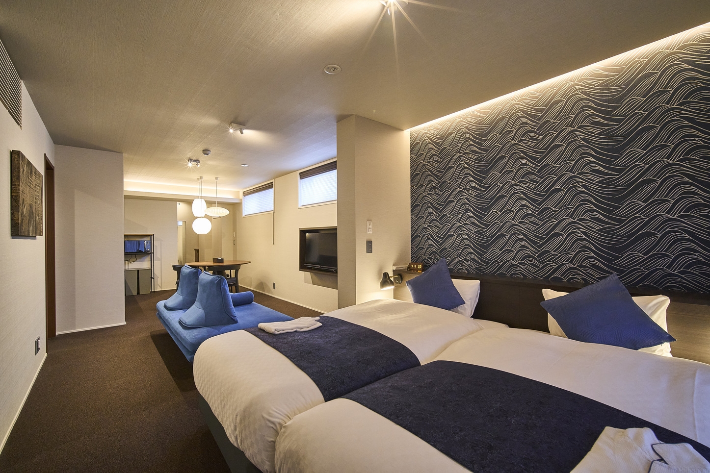 スイートルーム 煌・耀 幅1400mm×丈1950mmのベッド4台 (ツーベッドルームございます) アイランドキッチン付 90平米 最大4名様でゆったり