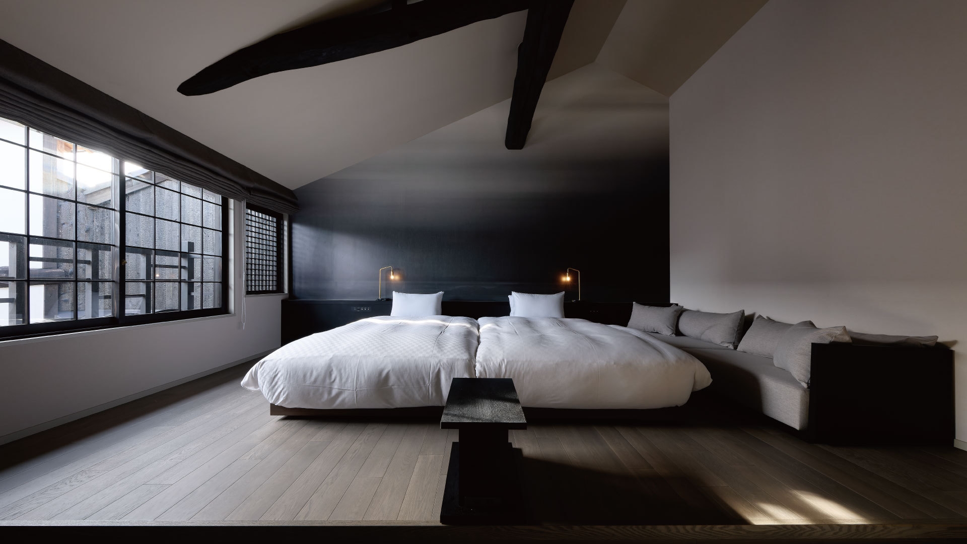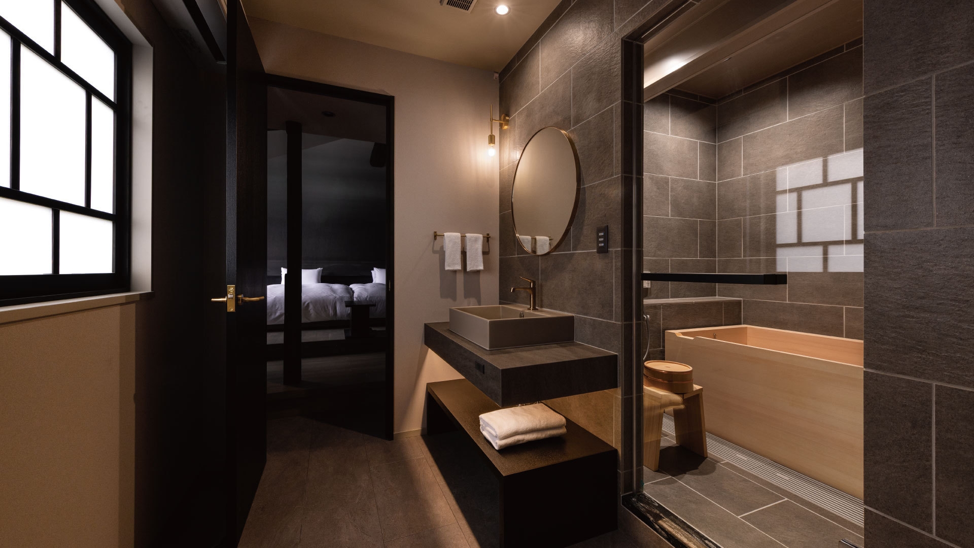 光と影が織りなす、和の静寂に包まれる空間和のしつらえに、現代的な設計の美しさが融合する客室。