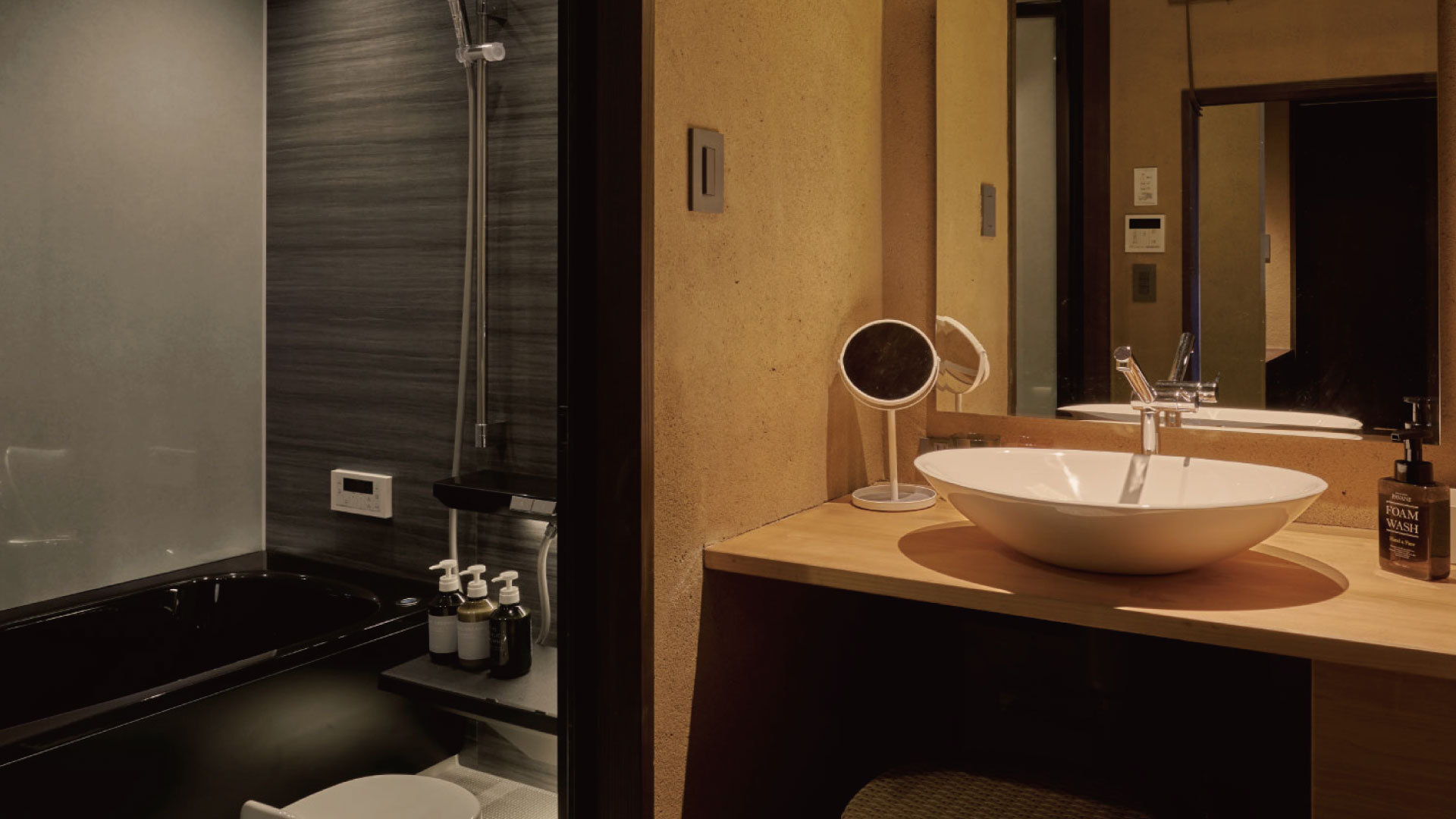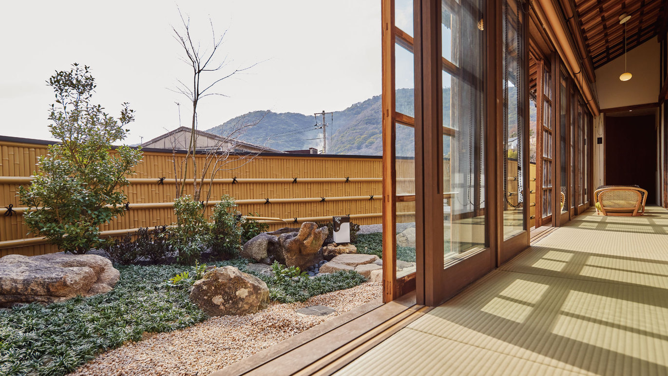 部屋設備・備品<令和5年5月NEW OPEN>「櫂棟」と同様に【客室内檜風呂】を備えております。 お部屋からは 鞆らしい「穏やかな街並み」が広がります。