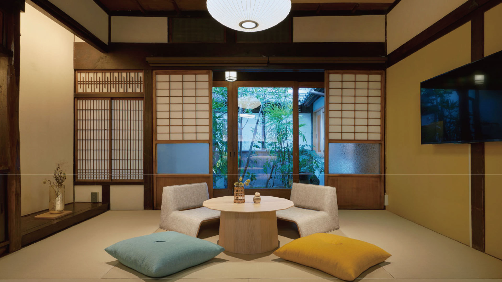 櫂棟に構える当客室は一棟貸しのメゾネットタイプ。「1F+2F」と2フロアに渡る空間で構成され各棟の中でも最も平米数が広いです。