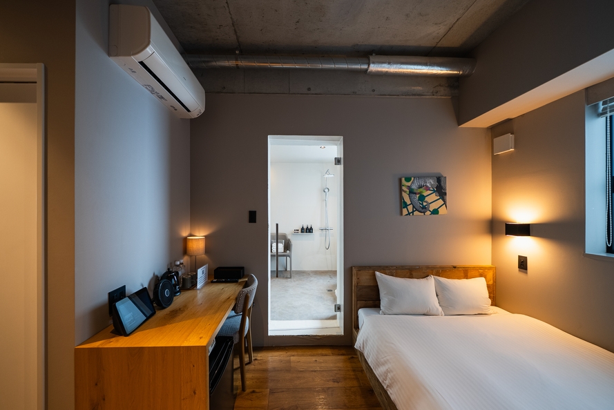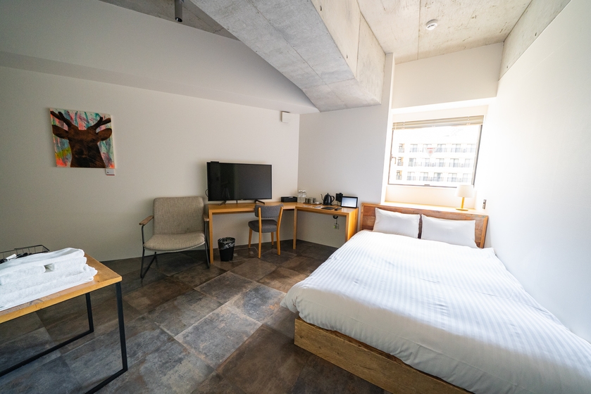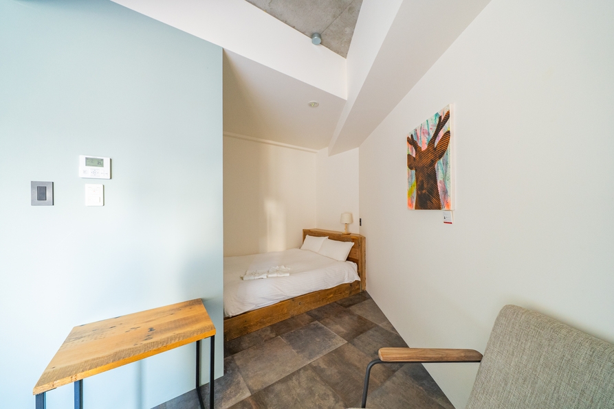 メゾネットタイプの部屋です。ダブルベッドを1つご用意、最大2名様ご宿泊いただけます。