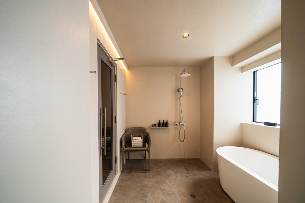 専用サウナと広々バスルーム付き。ととのう体験を楽しめる贅沢な癒しの空間です。