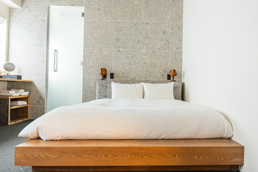 白を基調としたミニマルで落ち着いた客室に、全室Wi-Fiや動画配信サービス対応のテレビなど快適な設備を完備。