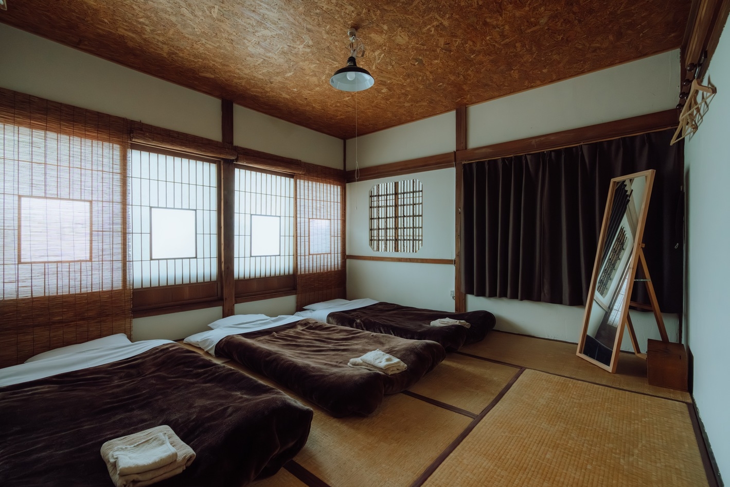 3-4名用の個室です。未就学児のお子様とお泊まりいただけます。エアコン完備。水回りはすべて共用です。