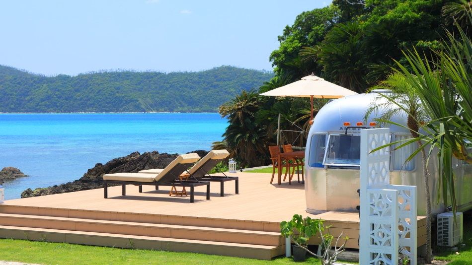 一棟貸切 クイーンベッドルーム 世界最高峰のキャンピングトレーラーをリノベーション お洒落なシンプルなインテリアでリラックス 夕日と満点の星を独り占め