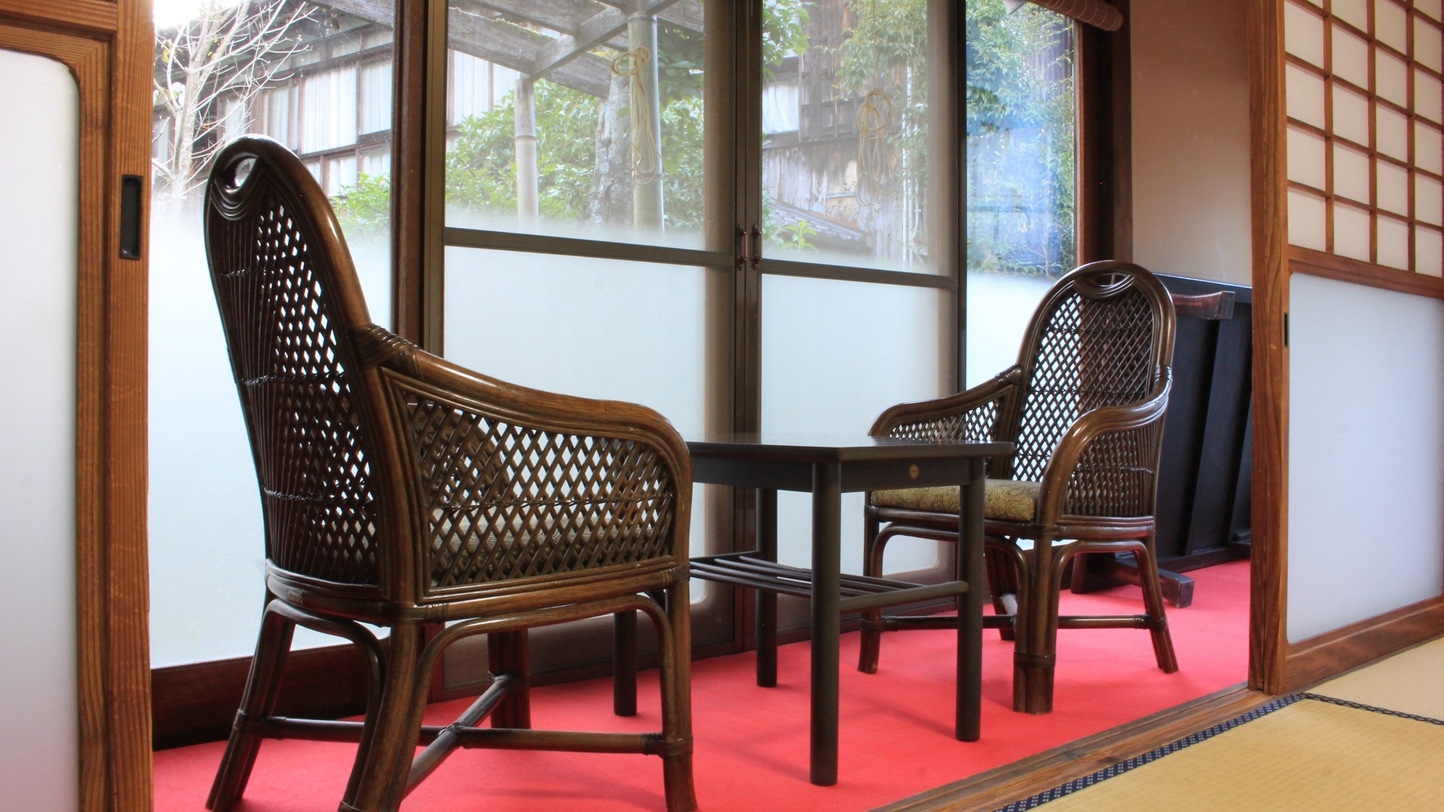 庭や池を望む静かなお部屋。本間と次の間の二間で約15畳。