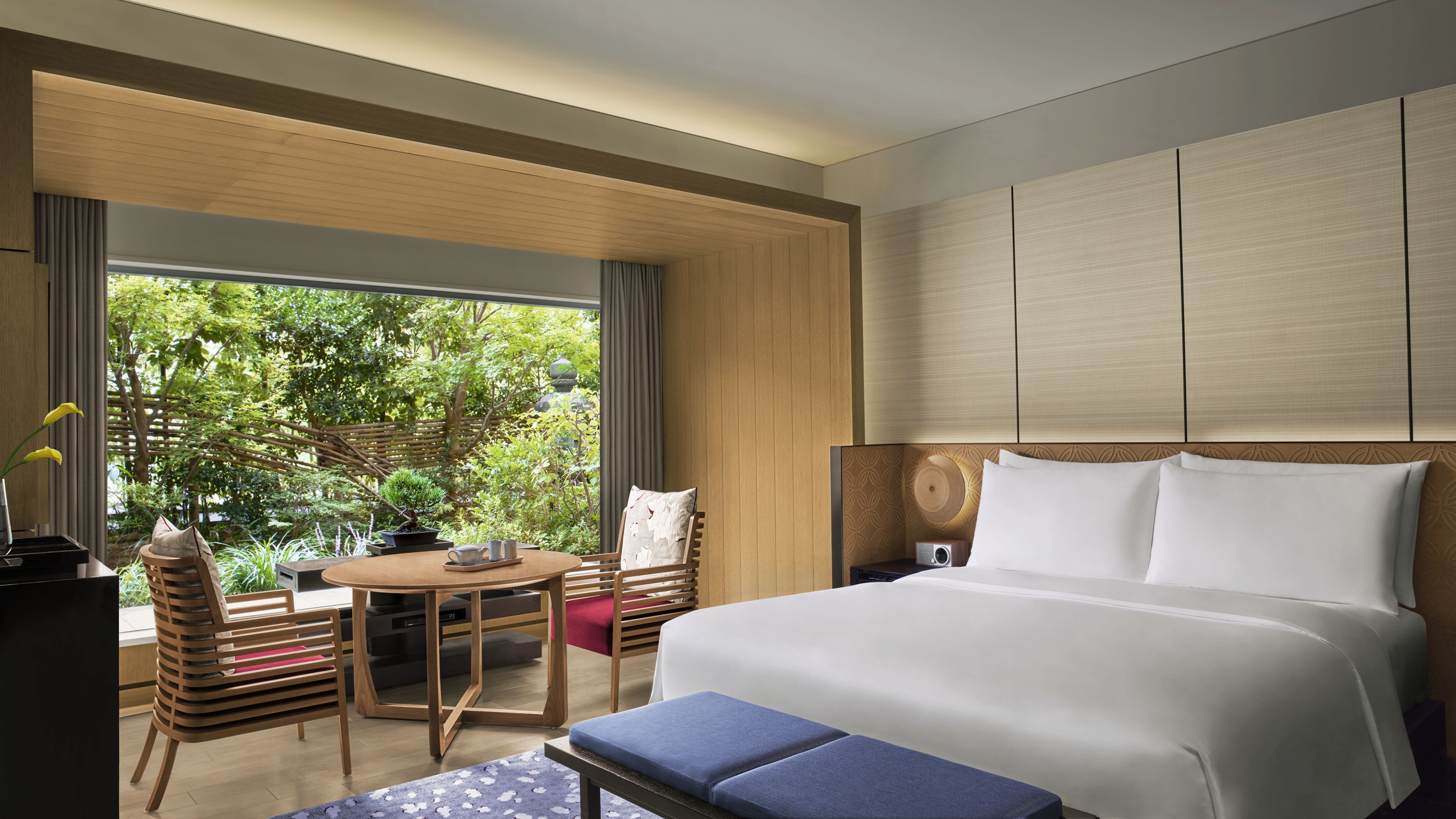 日本庭園を配したプライベートテラスのある優雅を極めたスイート。定員:大人2名と子供2名、もしくは大人3名(子供添い寝不可)