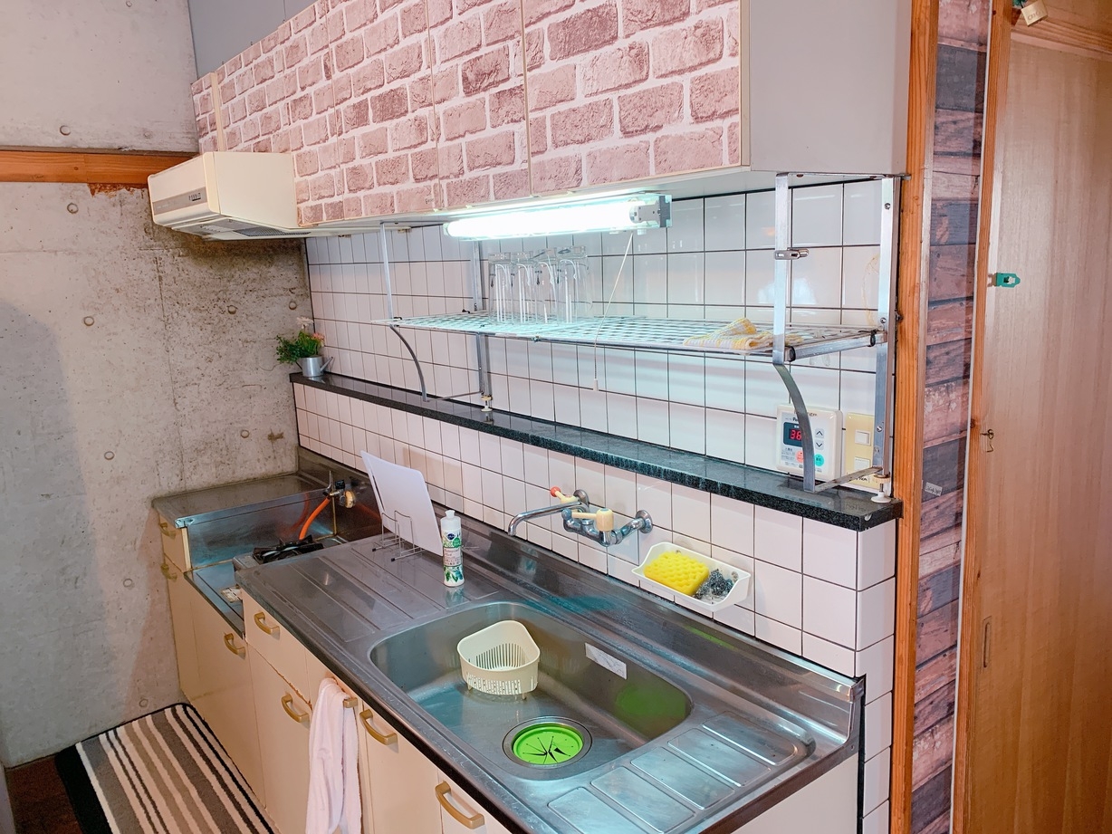 ・キッチン:冷蔵庫・コンロ・電子レンジ・ポット・炊飯器等の調理器具・食器