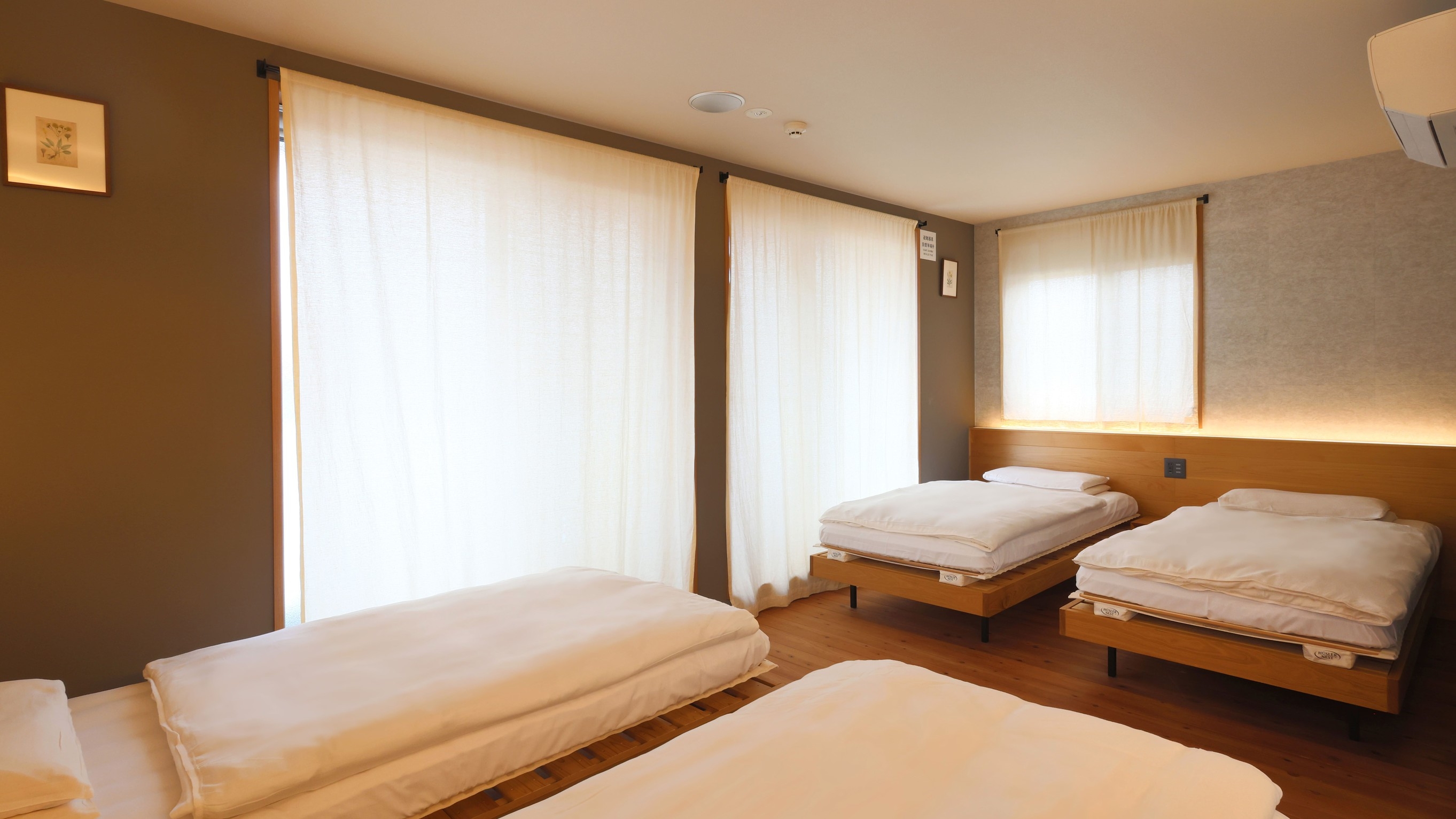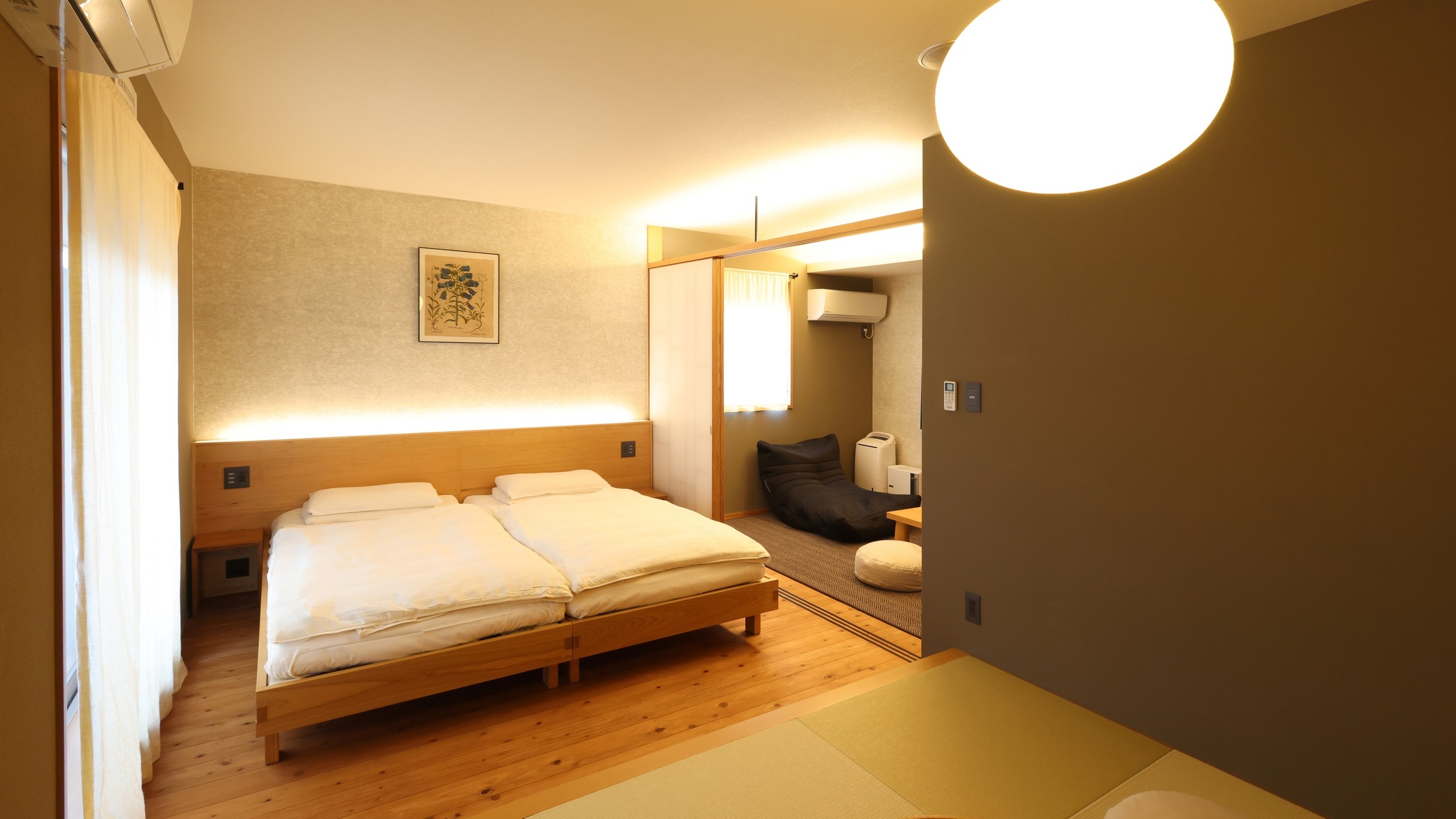 それぞれのお部屋でしつらえの異なる寝具や絵画