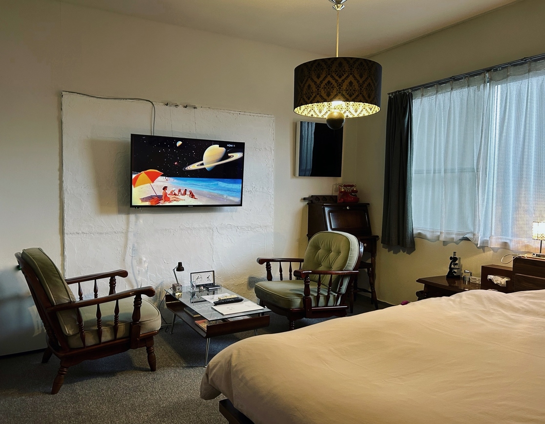 アート作品の中でご宿泊芸術・心理学の専門家によってプロデュースされた狭山美学校の素泊りプラン