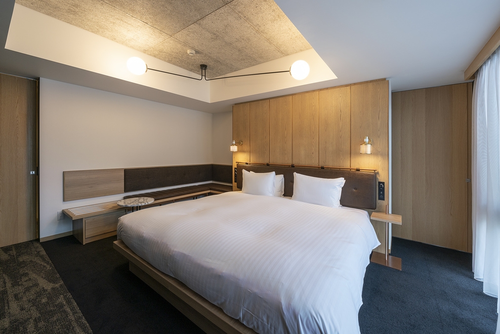 洋室ダブル(禁煙)33平米 ベッド幅200x200 1台 Wi-Fi バス・トイレ別 49インチTV+Chromecast Bluetoothスピーカー