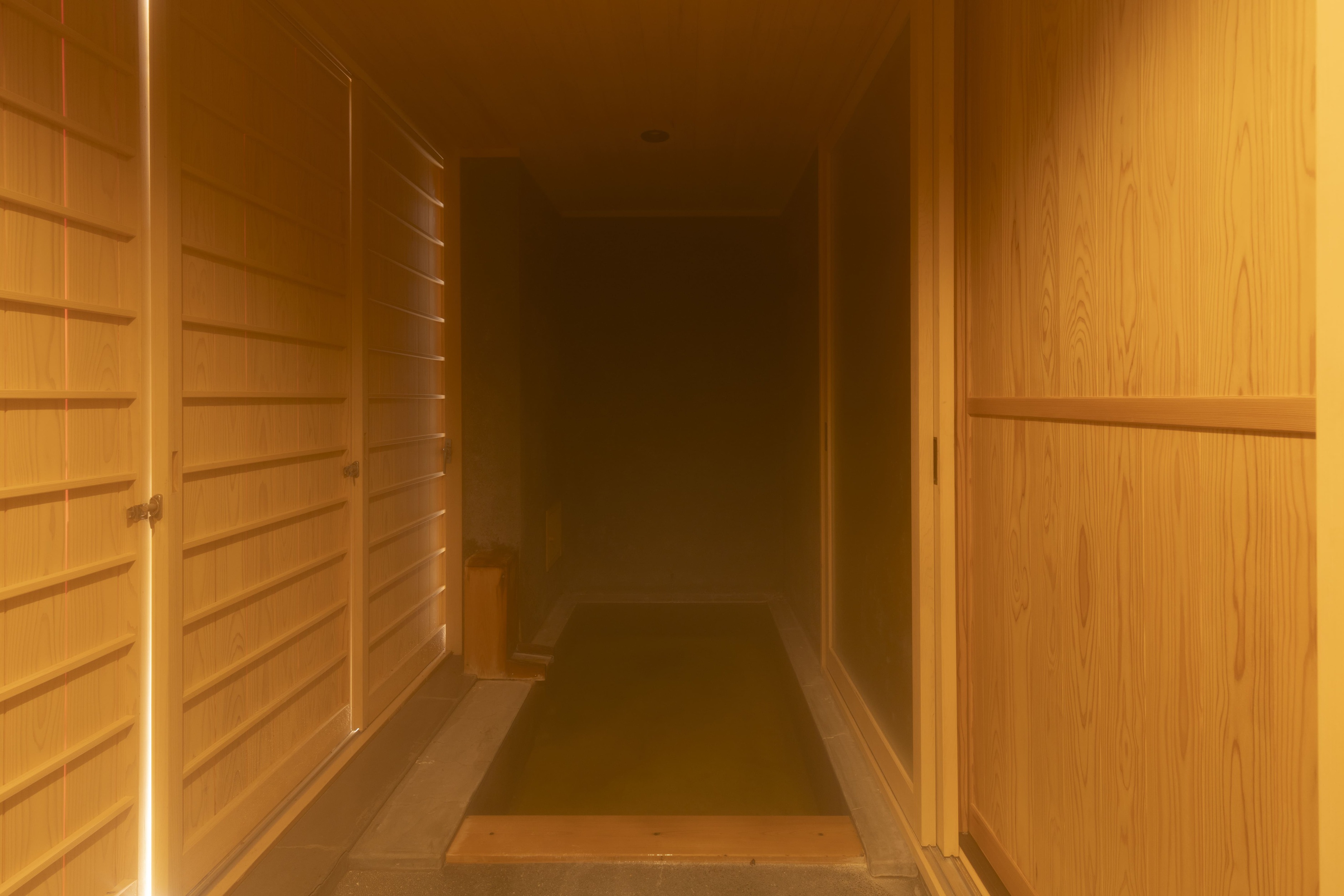 本館1階、土、木、和紙、布など、素材を感じる落ち着いた内装のお部屋に、人目を気にせず、好きなだけ温泉を堪能できる半露天風呂、坪庭が付いた新しいお部屋です。