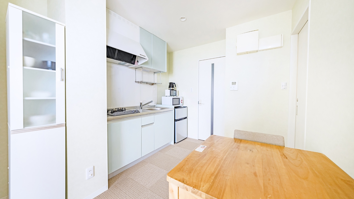 ★全室キッチン・調理器具・電子レンジ、冷蔵庫、食器完備、島野菜を取り入れた、お好きな料理もお気軽にできます!