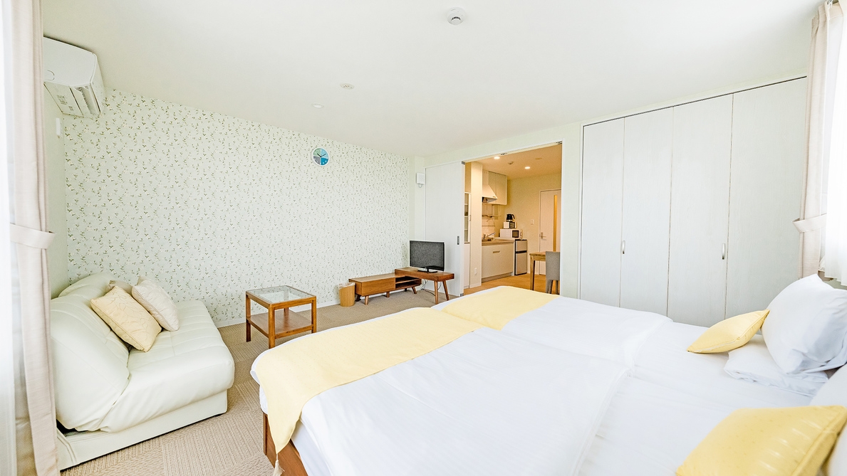 ■シングルベッド2台 ※3名利用時はソファベッド使用 ■キッチン・電子レンジ・洗濯機・浴室乾燥機完備 ■未就学児のみ添寝可(最大2名まで)
